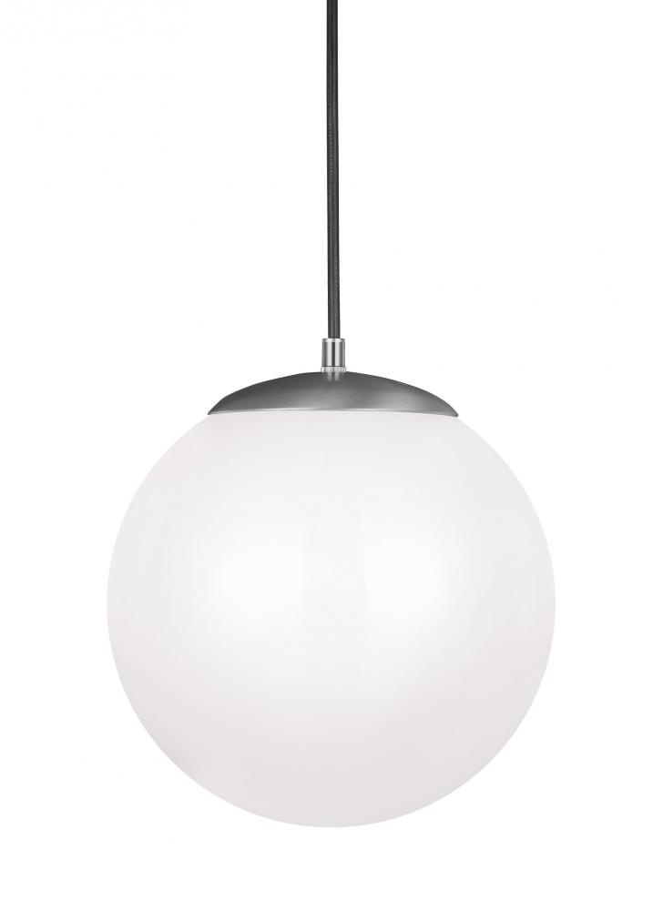 The Leo - Hanging Globe one light indoor pendant in satin aluminum provides abundant light to your home, while adding style and interest. While hanging globes are one of lighting's hottest trends, Sea Gull's timeless Leo Collection has been around for 50 years! Constantly evolving with the times, these classic pendants are now offered with NEW Clear Seeded glass and in Satin Aluminum finish. Adjustable cloth cords allow for unlimited variations of hanging heights. All glass softly diffuse the light, each fixture comes with 54†of cuttable cord to customize the installation exactly to your needs. Easily convert every piece in the collection to LED by purchasing LED replacement lamps sold separately. All fixtures are qualified and California Title 24 compliant and damp rated for use in sheltered, damp environments like bathrooms, covered patios or porches.
