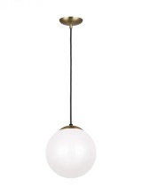 The Leo - Hanging Globe one light indoor pendant in satin brass provides abundant light to your home, while adding style and interest. While hanging globes are one of lighting's hottest trends, Sea Gull's timeless Leo Collection has been around for 50 years! Constantly evolving with the times, these classic pendants are now offered with NEW Clear Seeded glass and in Satin Aluminum finish. Adjustable cloth cords allow for unlimited variations of hanging heights. All glass softly diffuse the light, each fixture comes with 54†of cuttable cord to customize the installation exactly to your needs. Easily convert every piece in the collection to LED by purchasing LED replacement lamps sold separately. All fixtures are qualified and California Title 24 compliant and damp rated for use in sheltered, damp environments like bathrooms, covered patios or porches.