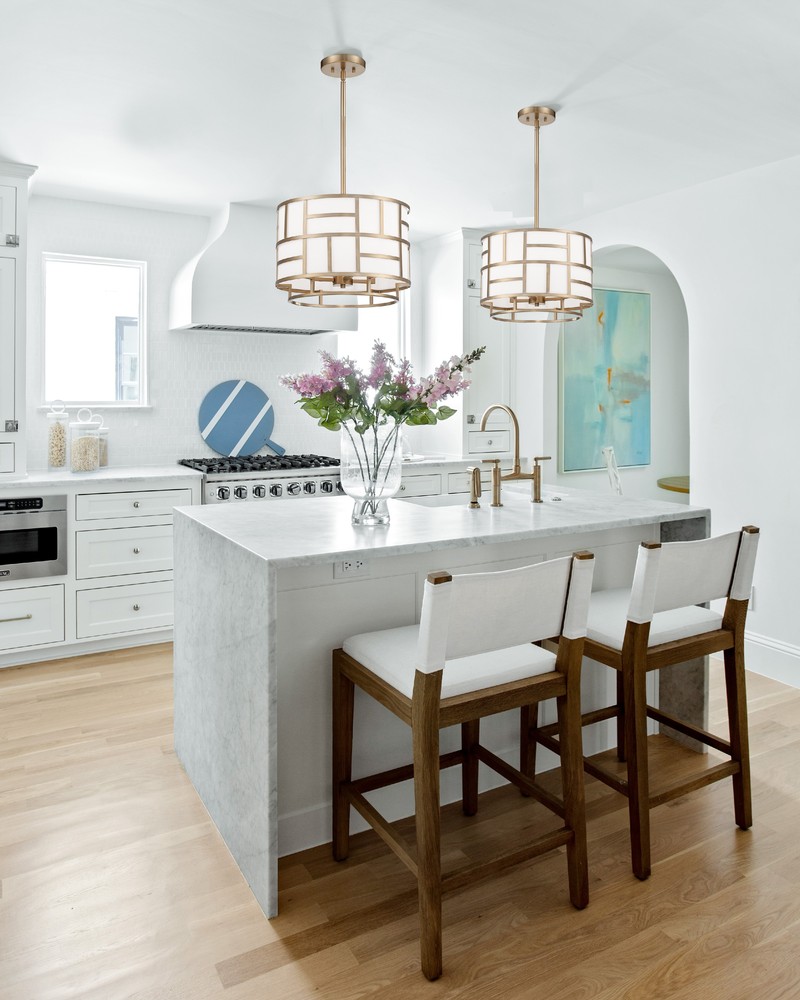 The Danielson Collection designed by Libby Langdon will light up your space with a modern flare. The classic white silk drum shade is surrounded by a geometric steel frame reminiscent of an art deco pattern. The Danielson collection diffuses a warm glow that is both elegant and dramatic to any design style.