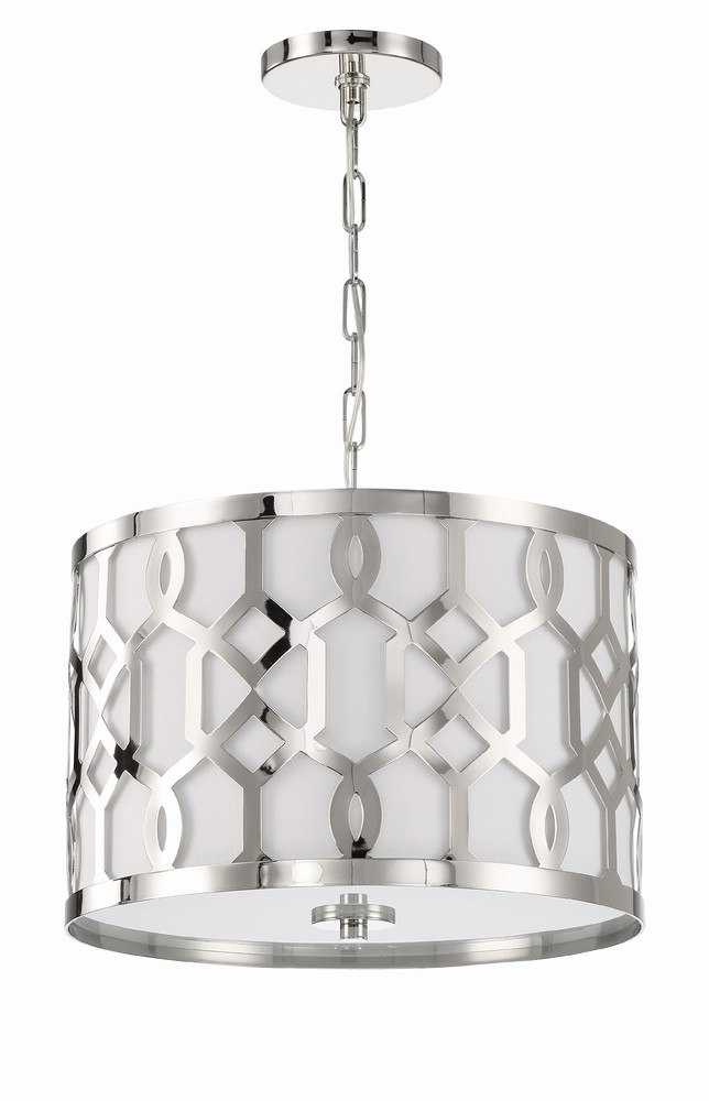 A striking geometric statement, the Jennings collection pairs Libby Langdon's signature classic design with a modern flair. The Jennings is an open, graphic metal design with a white silk shade. A perfect marriage of classic and modern creating the ideal elegance.
