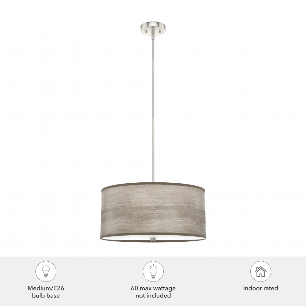 The Solhaven pendant is a picture of an updated mid-century style. The drum pendant light with wood-inspired shade is perfect in your office or your dining room. In any space, the Solhaven fixture sets a tone of sophistication. Our Solhaven collection has many sizes to mix and match anywhere you need extra lighting and style! Mix and match with fans from our ceiling fan collections to fully finish your space.