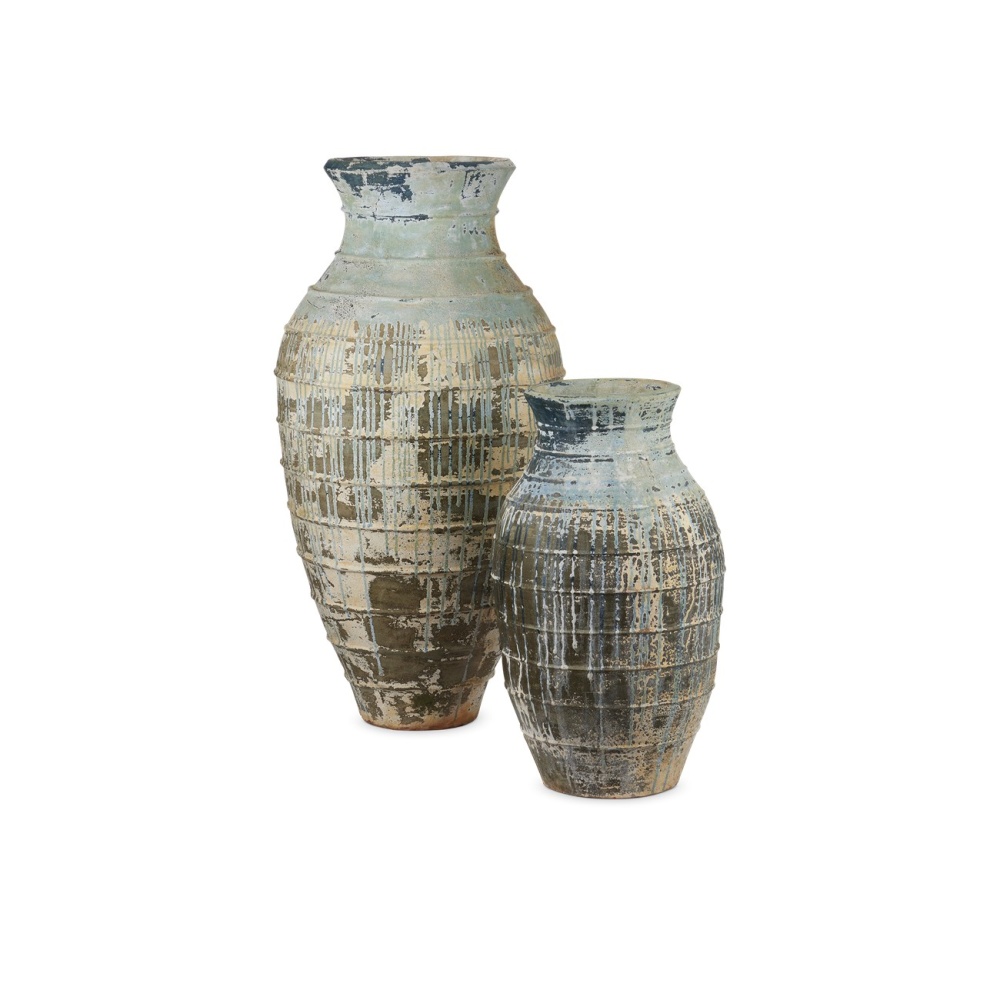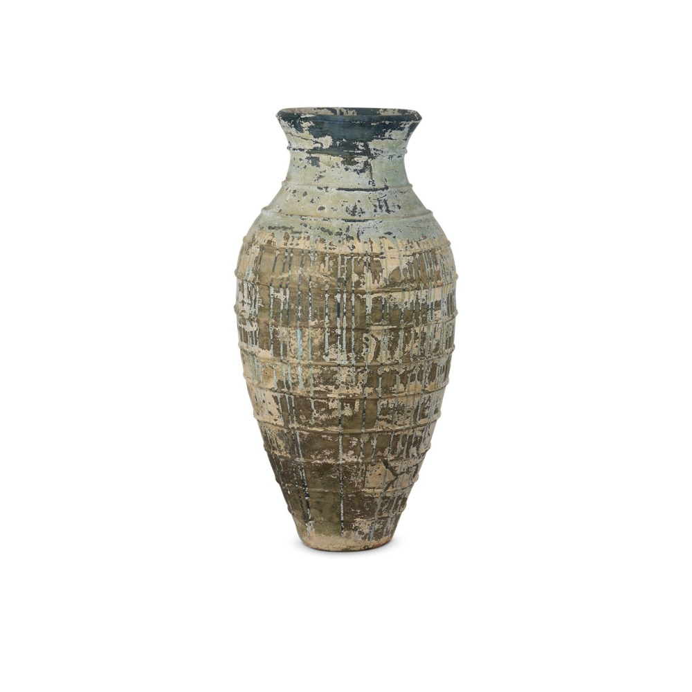 Bring the garden indoors (or enhance outdoor spaces) with the Lipari Extra Large Antique Blue Drip Urn and its strong Mediterranean vibe. Inspired by classic shapes that have been staples in Italian gardens for centuries, this aged white planter has pitting in its terracotta surface to create the effect of a true antique.