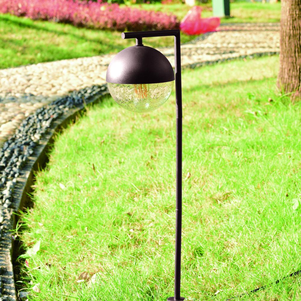The Lisle low voltage LED bulb path light makes a contemporary statement about your home while offering functionality, energy savings, and security for your outdoor spaces. The versatile bronze finished metal dome and clear seeded glass shade combine to create a beautiful globe shape. Connect this walkway light with other landscape lighting products to customize and highlight your outdoor spaces. Ground stake, connector cable, and medium base T9 LED bulb included. Low voltage transformer required (sold separately).