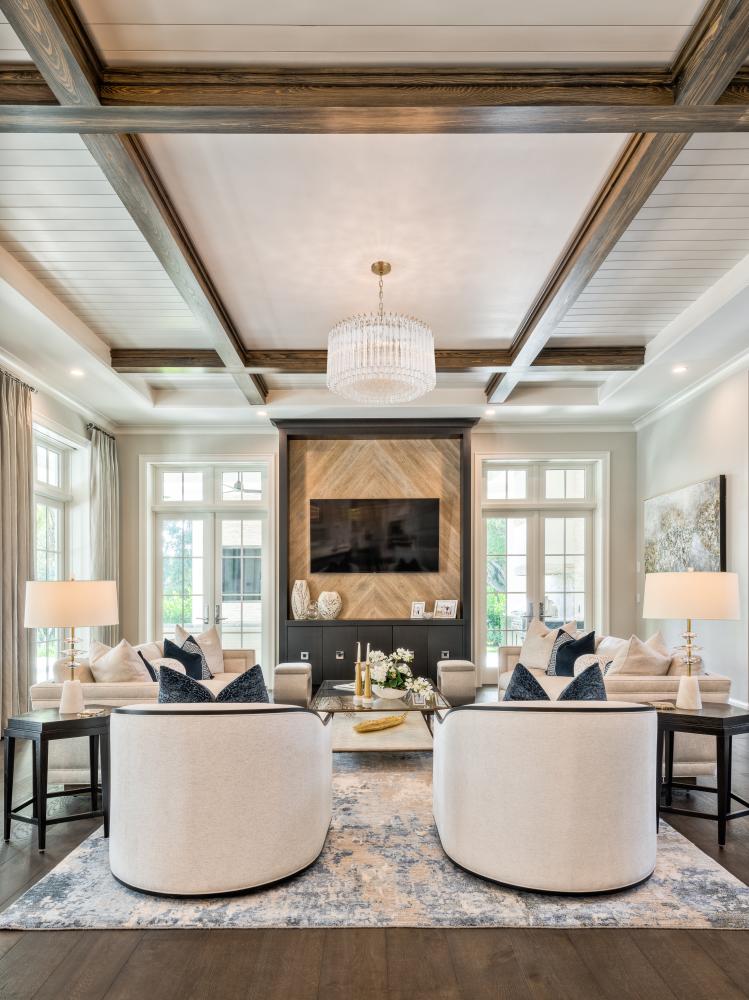 Characterized by clean lines, sculptural forms, and warm metallic or wood accents, often featuring bold shapes and playful pops of color for a retro yet timeless appeal.