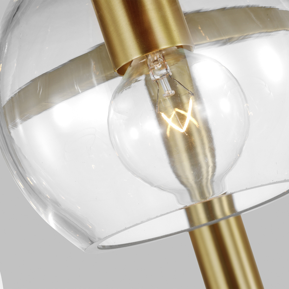Londyn is inspired by geometric playful midcentury fixtures in metal and glass with exciting profiles and scale play. Rectangle stock metal rods and a playful layout of blown glass globes in two sizes with elegant metal cuffs create visual interest. This chandelier would be great above a dining table or casual island/nook.