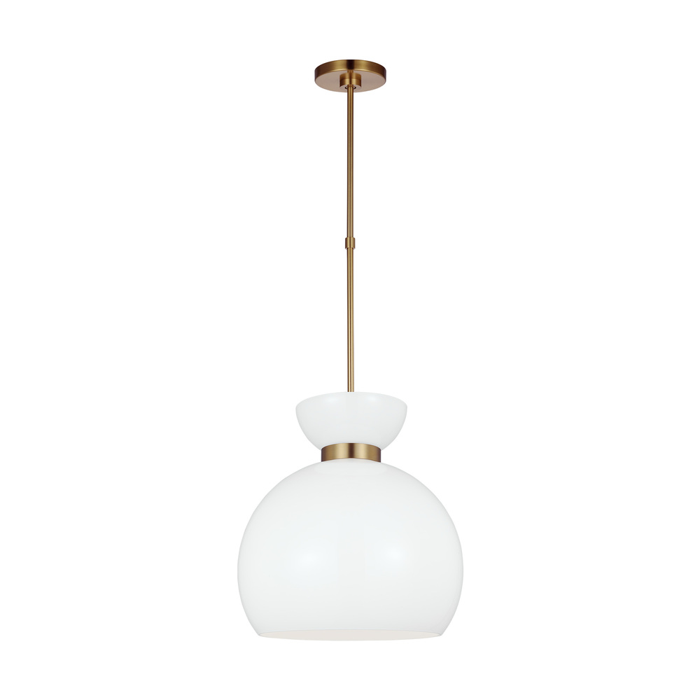 Londyn is inspired by geometric playful midcentury fixtures in metal and glass with exciting profiles and scale play. Two glass spheres with a simple metal cuff and a single bulb—an elegant pendant with graphic interest. This pendant would be great as a single or in multiples over a kitchen island.