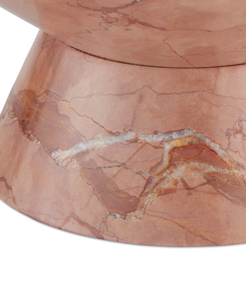 The Lubo Rosa Small Bowl is made of Rosa Cappuccino marble, which has a swirling personality as glorious as a desert sky at sunset. The pink footed bowl will be a chameleon in an interior, as it will be just as fitting for holding decorative objects in a main living space as it will be for displaying fruit on a kitchen island. The surfaces will vary from piece to piece.
