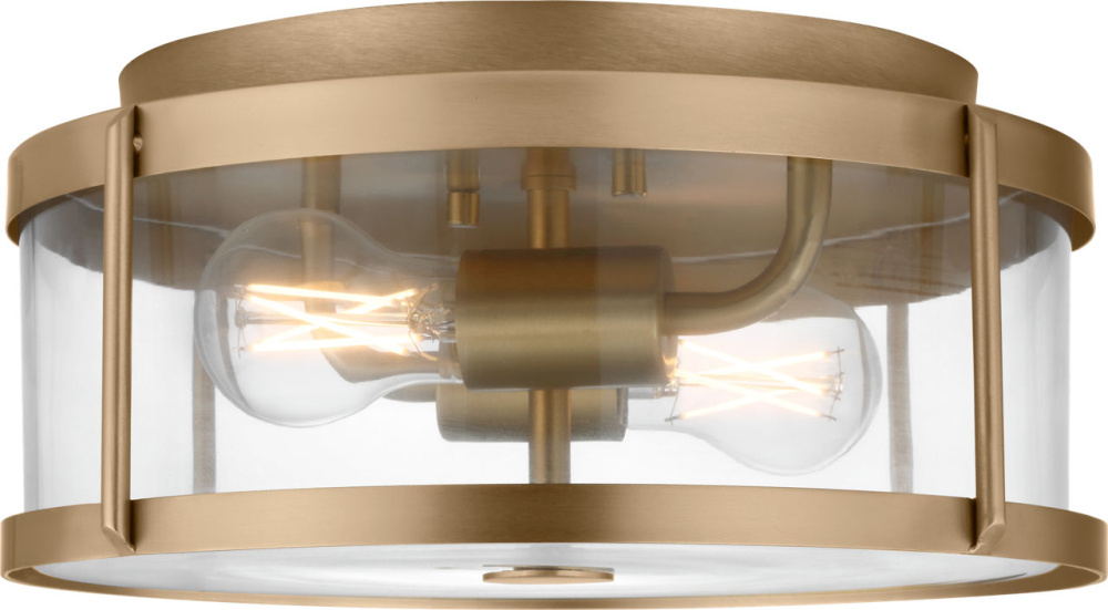 The Lumra 13" Flush Mount features a cylindrical drum form defined by clear glass panels set within a structured metal frame. Open sightlines allow full visibility of the lamping, emphasizing its straightforward construction and balanced proportions. suited for dining rooms, kitchens, and entryways, Lumra offers versatile illumination with a modern, functional profile.
