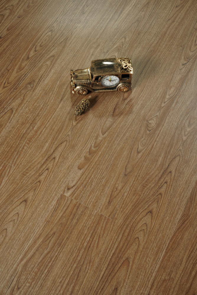 A warm, golden-toned wood finish with flowing grain patterns, bringing a natural, inviting ambiance to any space while offering the durability of modern flooring.