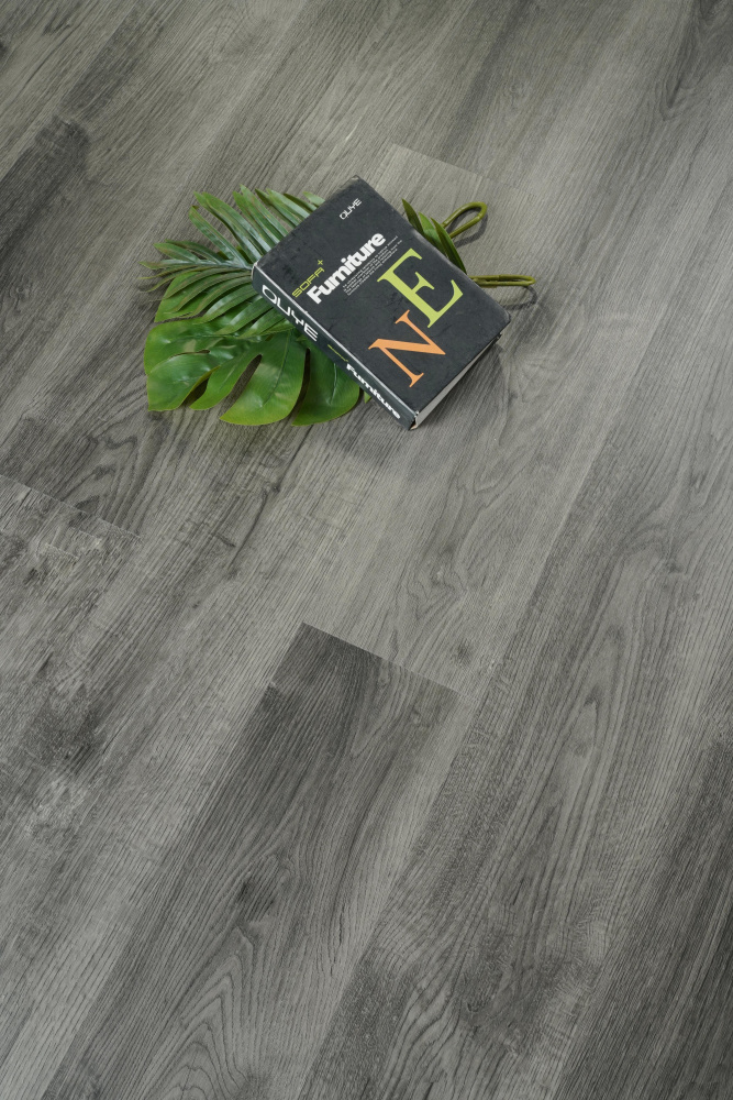 Elevate your space with our premium SPC flooring that combines a sophisticated gray wood grain pattern with advanced 20 mil wear layer technology, 70% PVC construction.