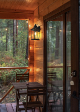 - Features a tapered rectangular frame with a pitched roof, reminiscent of traditional gas lanterns.