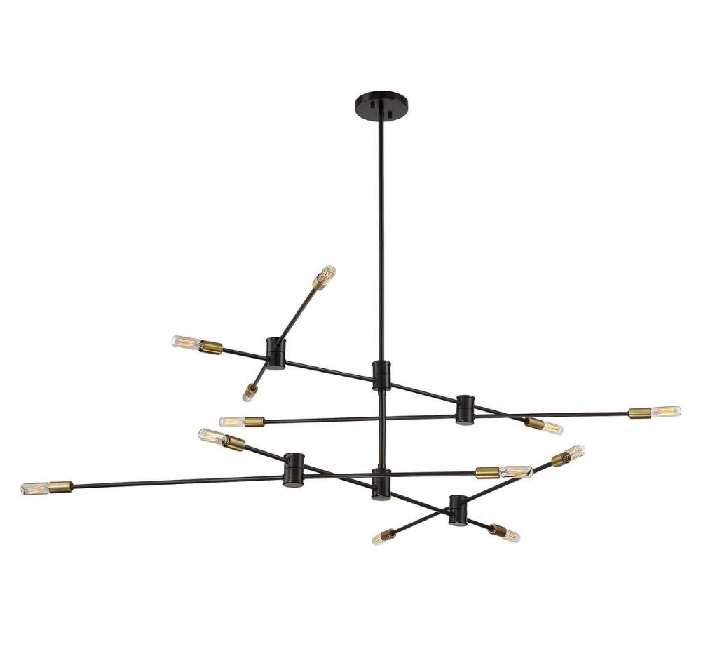 The open, structured look of the Savoy House Lyrique 12-light two-tier chandelier is a great choice for today's stylish interiors. The arms are adjustable, allowing you to create custom looks and change them on the fly. Finished in bronze with brass accents. The hanging height is adjustable and this fixture can be mounted on a sloped ceiling. Chandeliers can be used in a wide variety of spaces, including but certainly not limited to dining rooms, living rooms, great rooms, bedrooms, kitchens, foyers, offices and even bathrooms! Bulbs not included. Try using stylized bulbs such as tubular shape for a different look! The finish can be matched with bronze or brass hardware or mixed with hardware in other finishes. Lyrique is perfect for contemporary style spaces and any room that has an edgy touch. When you choose a Savoy House lighting fixture, you can be certain you’ve selected a piece that will withstand the test of time.