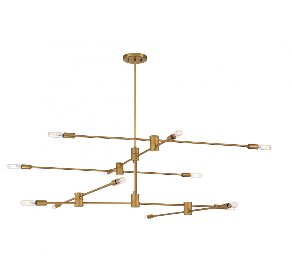 The open, structured look of the Savoy House Lyrique 12-light two-tier chandelier is a great choice for today's stylish interiors. The arms are adjustable, allowing you to create custom looks and change them on the fly. Finished in warm brass. The hanging height is adjustable and this fixture can be mounted on a sloped ceiling. Chandeliers can be used in a wide variety of spaces, including but certainly not limited to dining rooms, living rooms, great rooms, bedrooms, kitchens, foyers, offices and even bathrooms! Bulbs not included. Try using stylized bulbs such as tubular shape for a different look! The brass finish can be matched with brass or gold hardware or mixed with hardware in other finishes. Lyrique is perfect for contemporary style spaces and any room that has an edgy touch. When you choose a Savoy House lighting fixture, you can be certain you’ve selected a piece that will withstand the test of time.