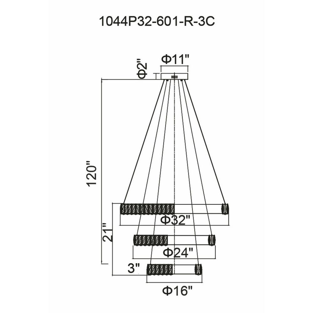 Add a touch of modern luxury to your living space with the stunning Madeline 3-Ring LED Chandelier in a sleek chrome finish. Featuring concentric rings adorned with dazzling clear crystals, this eye-catching fixture combines energy-efficient LED lighting with ultra-glamorous style. Perfect for high-ceiling entryways, grand staircases, or spacious foyers, this oversized down chandelier makes a bold statement while casting a brilliant, inviting glow. Elevate your decor with this exquisite blend of contemporary design and timeless sophistication.