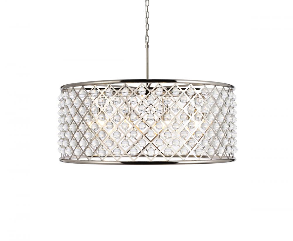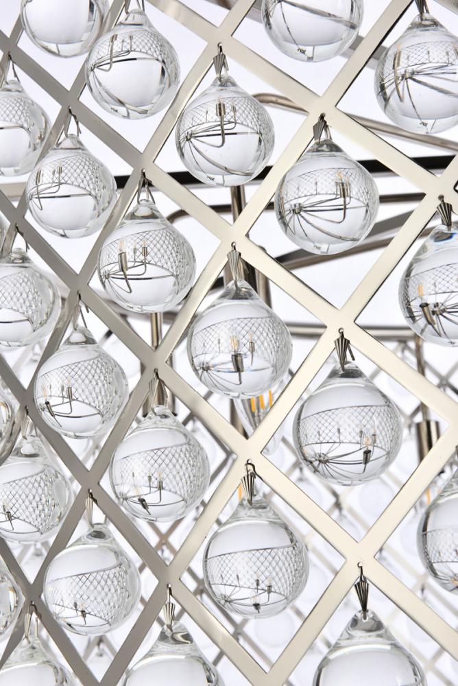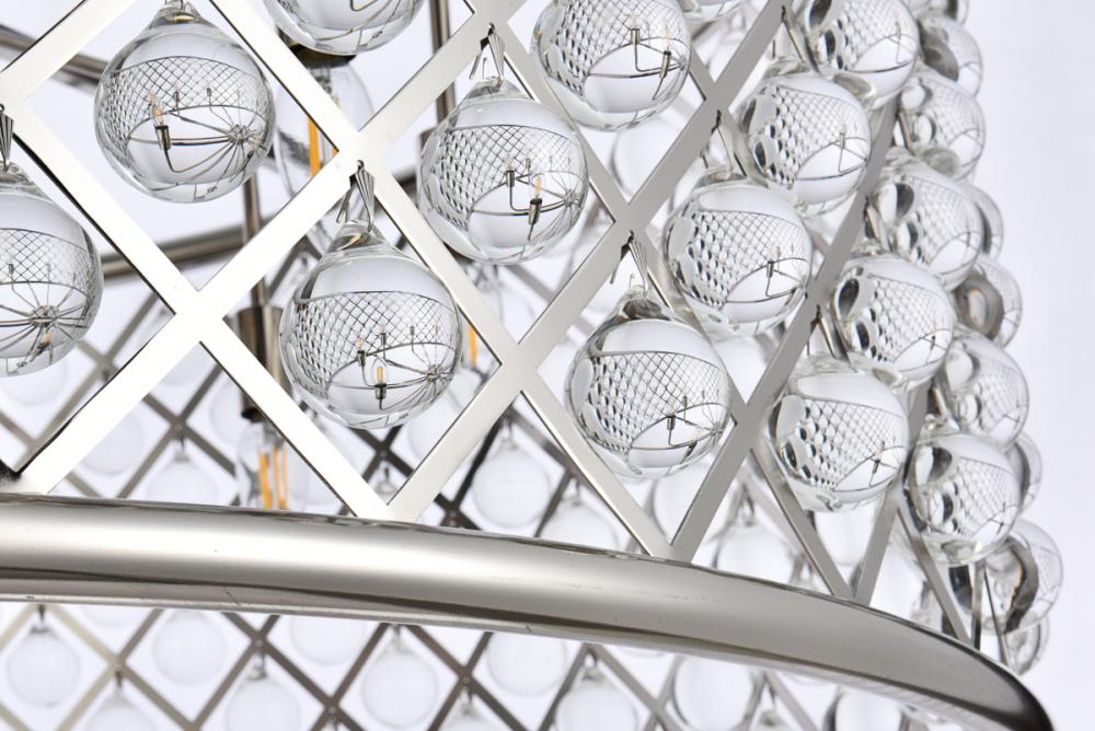 Modern simplicity meets organic beauty in the breathtakingly unique Madison collection. Hand-polished, smooth clear crystal spheres shimmer like dewdrops in a circular forged-iron grid with a golden-iron, mocha-brown, or polished-nickel finish. These airy pendant lamps will brighten up a kitchen, dining room, foyer, or stairwell in an explosion of reflected light.