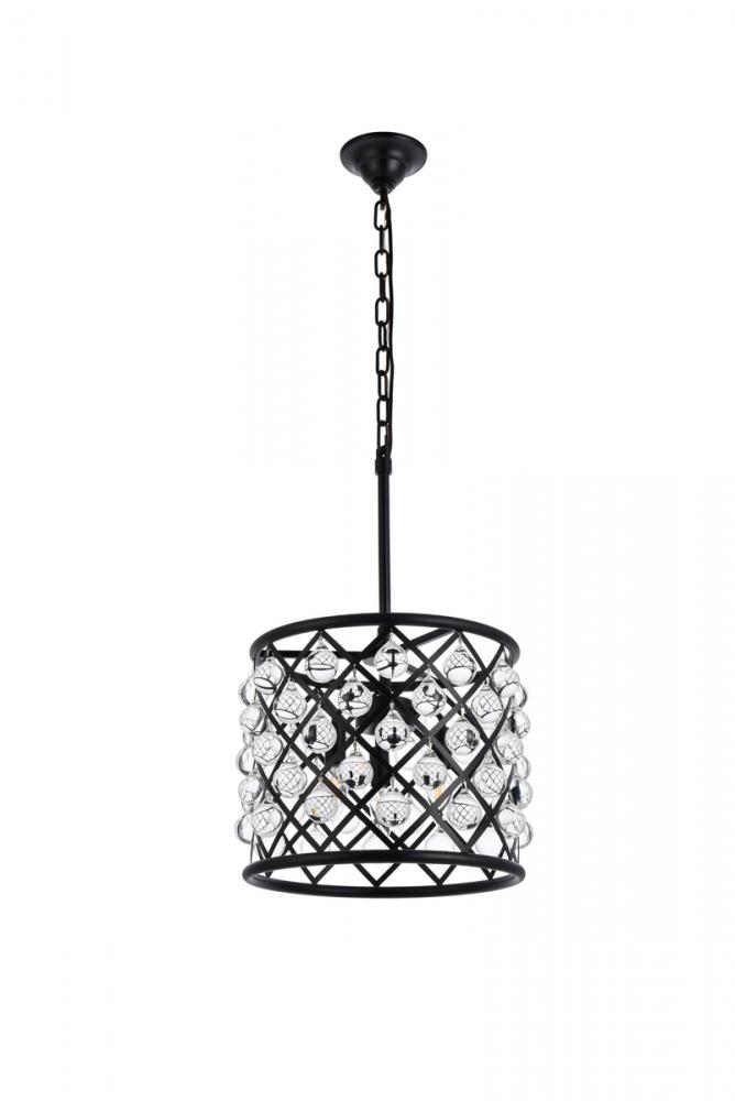 Elegant 1204D14MB/RC - Madison 3 light Matte Black Pendant Clear Royal Cut Crystal