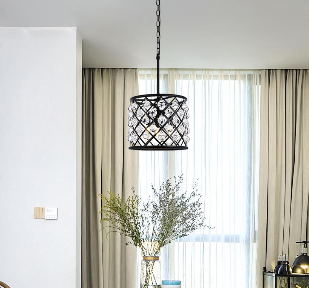Elegant 1214D12MB/RC - Madison 3 light Matte Black Pendant Clear Royal Cut Crystal