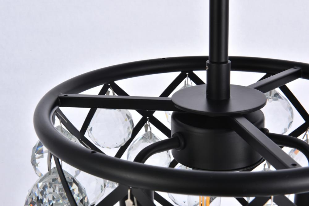 Lamp features a diameter of 12 inches, a height of 9 inches, a minimum hanging length of 15 inches, a maximum hanging length of 69 inches, and requires 3 candelabra bulbs