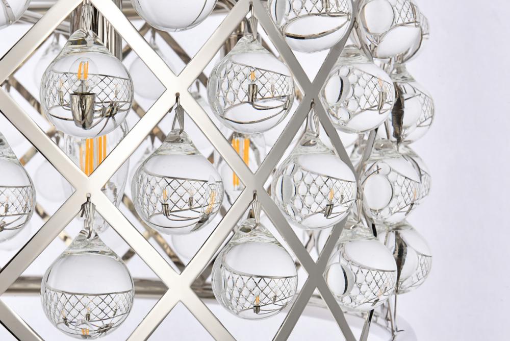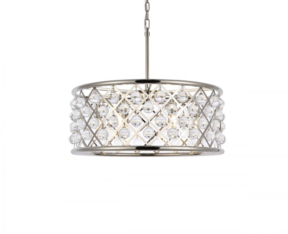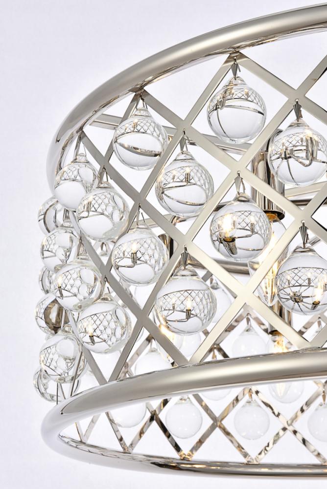 Modern simplicity meets organic beauty in the breathtakingly unique Madison collection. Hand-polished, smooth clear crystal spheres shimmer like dewdrops in a circular forged-iron grid with a golden-iron, mocha-brown, or polished-nickel finish. These airy pendant lamps will brighten up a kitchen, dining room, foyer, or stairwell in an explosion of reflected light.