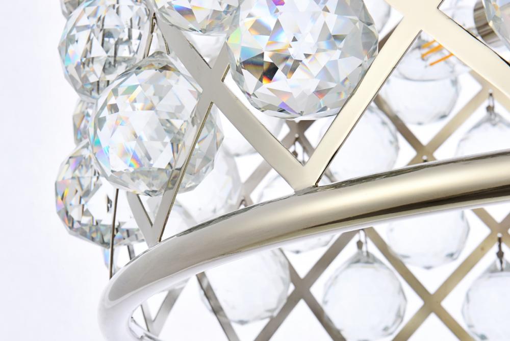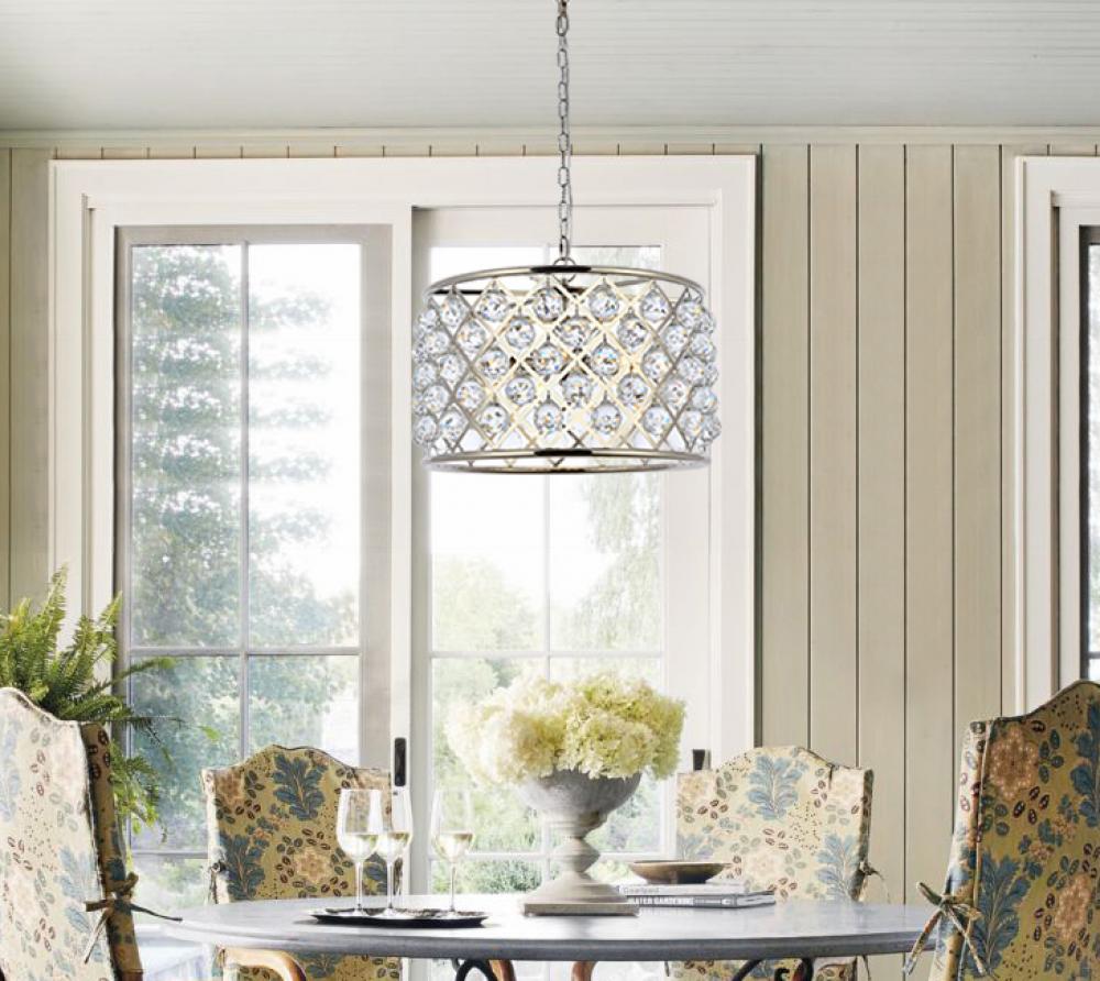 Modern simplicity meets organic beauty in the breathtakingly unique Madison collection. Hand-polished, multifaceted clear, golden-teak, or Silver-shade crystal spheres shimmer like dewdrops in a circular forged-iron grid with a golden-iron, mocha-brown, or polished-nickel finish. These airy pendant lamps will brighten up a kitchen, dining room, foyer, or stairwell in an explosion of reflected light.