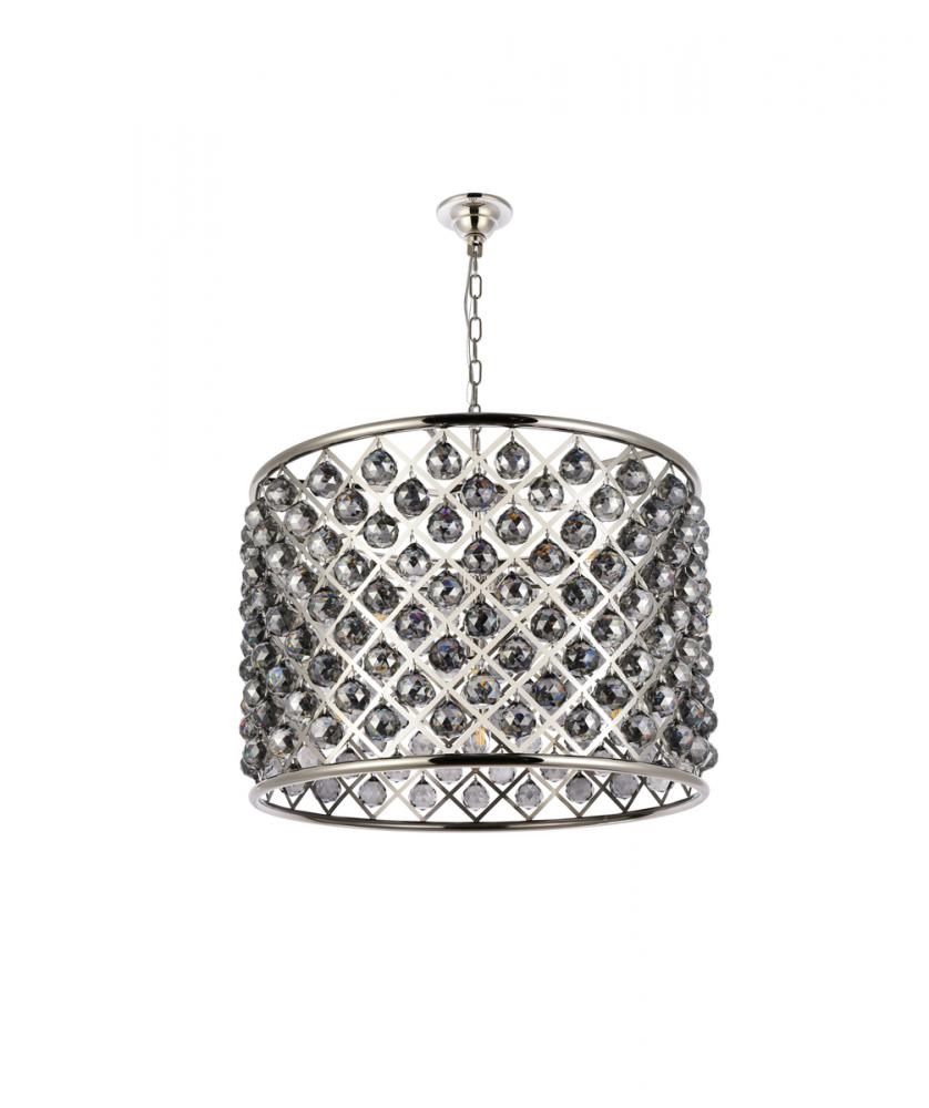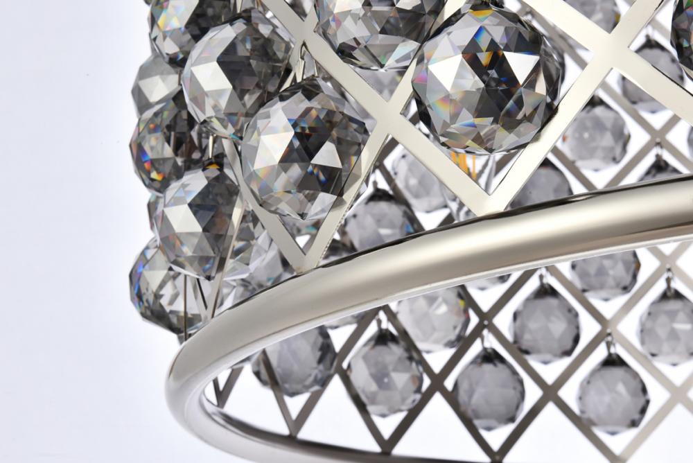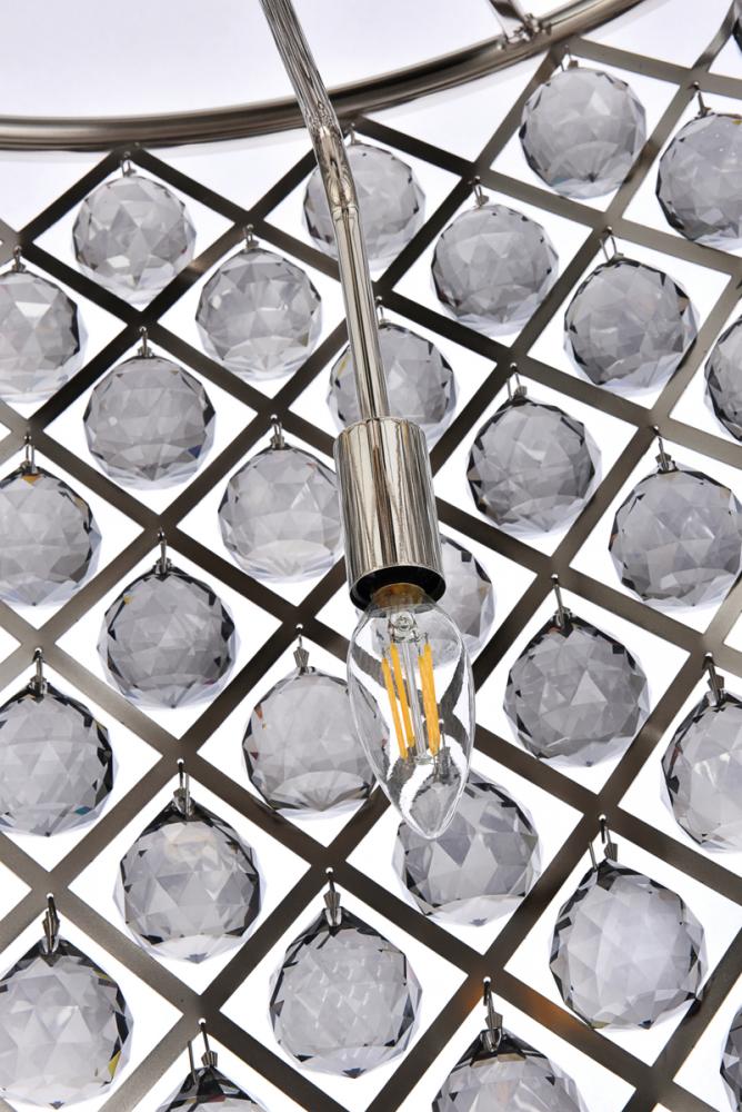 Modern simplicity meets organic beauty in the breathtakingly unique Madison collection. Hand-polished, multifaceted clear, golden-teak, or Silver-shade crystal spheres shimmer like dewdrops in a circular forged-iron grid with a golden-iron, mocha-brown, or polished-nickel finish. These airy pendant lamps will brighten up a kitchen, dining room, foyer, or stairwell in an explosion of reflected light.