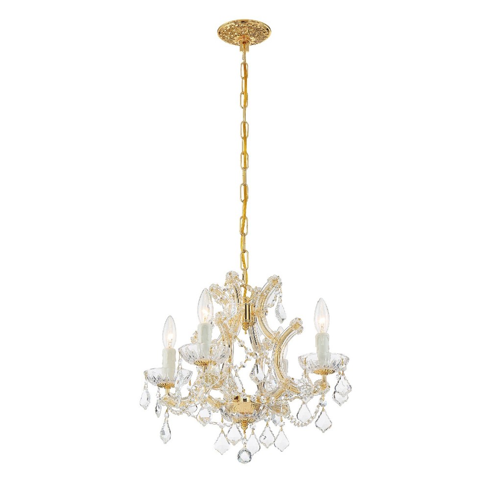 Draped in an abundance of crystal, the Maria Theresa collection is the epitome of high style. The fixture is stunning with glass arm frame decked with strands of faceted cut crystal. The fixture showcases opulence and decadence and is the perfect traditional accent to any space. Whether in a living room, or even closet or hallway, this fixture bring a luxurious addition to any decor.