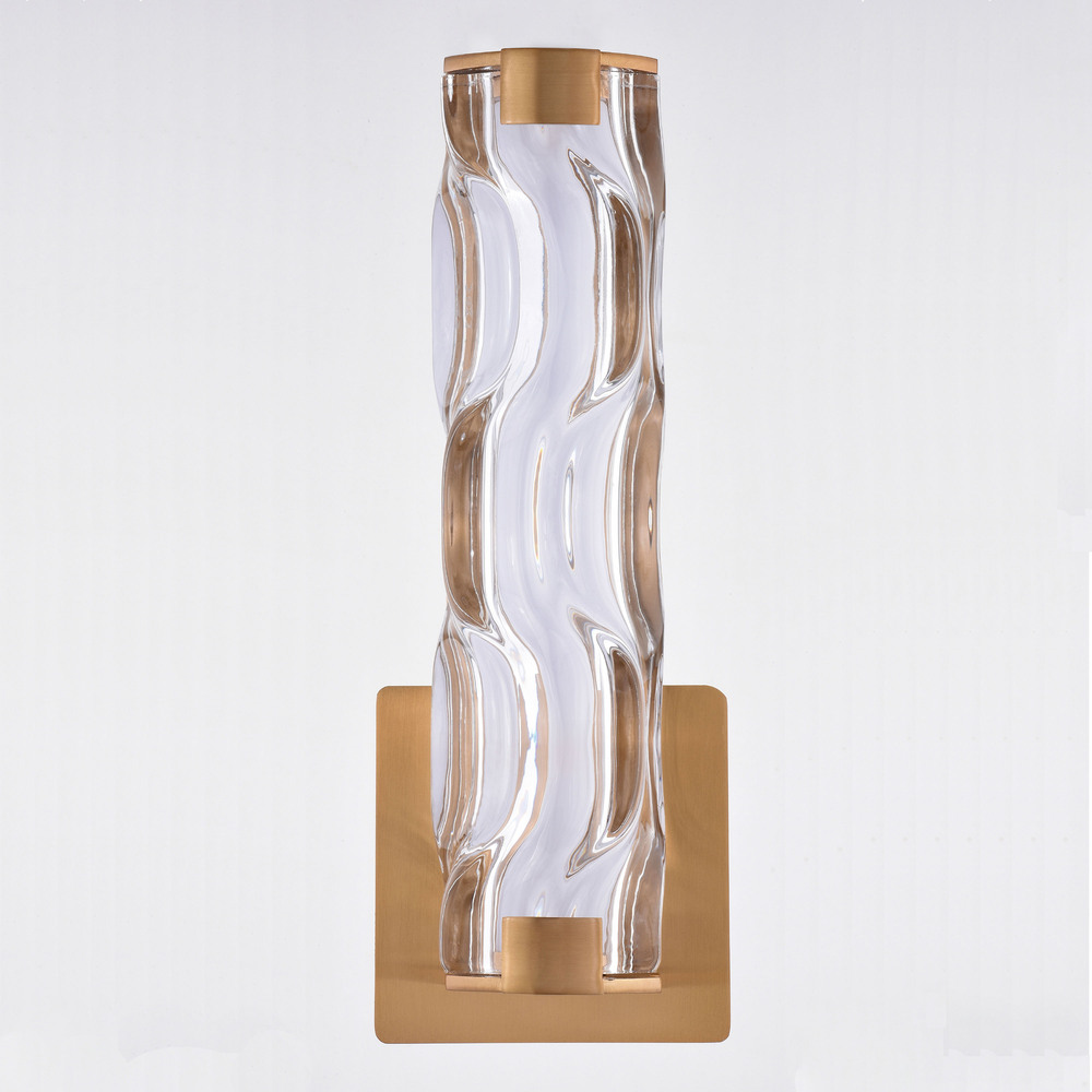The sculpted glass of the Marseille collection adds visual interest and movement to an otherwise classic shape. The chrome and natural brass finish options blend well with contemporary decors. An integrated LED light source provides energy saving, no bulb changing convenience, low maintenance and long-lasting performance. This wall sconce is ideal for bathrooms, hallways, stairways, and foyers. This bathroom light is perfect over small vanities or as a pair over double sinks.