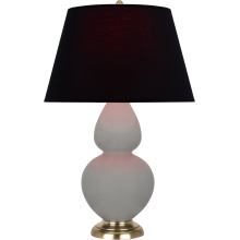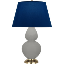 Matte Smokey Taupe Glazed Ceramic with Antique Natural Brass Finished Accents Double Gourd Table Lamp with Bright Blue Fabric Shade with Gray Lining - Our Double Gourd collection features a simple but gracefully curving silhouette. Available in a wide array of vibrant colors and several different base finishes.