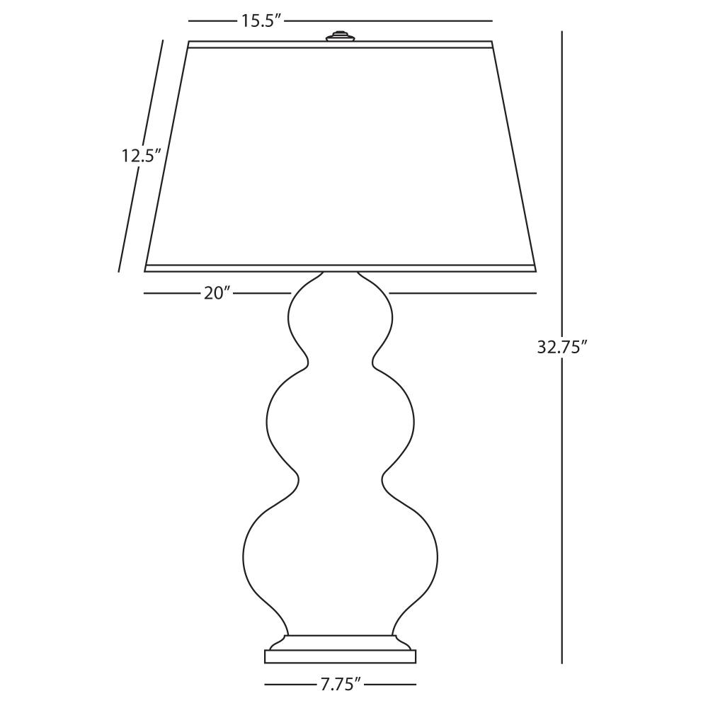 Our Triple Gourd collection features a simple but gracefully curving silhouette. Available in a wide array of vibrant colors and several different base finishes. - Steel Blue Glazed Ceramic with Deep Patina Bronze Finished Accents Triple Gourd Table Lamp with Pearl Dupioni Fabric Shade