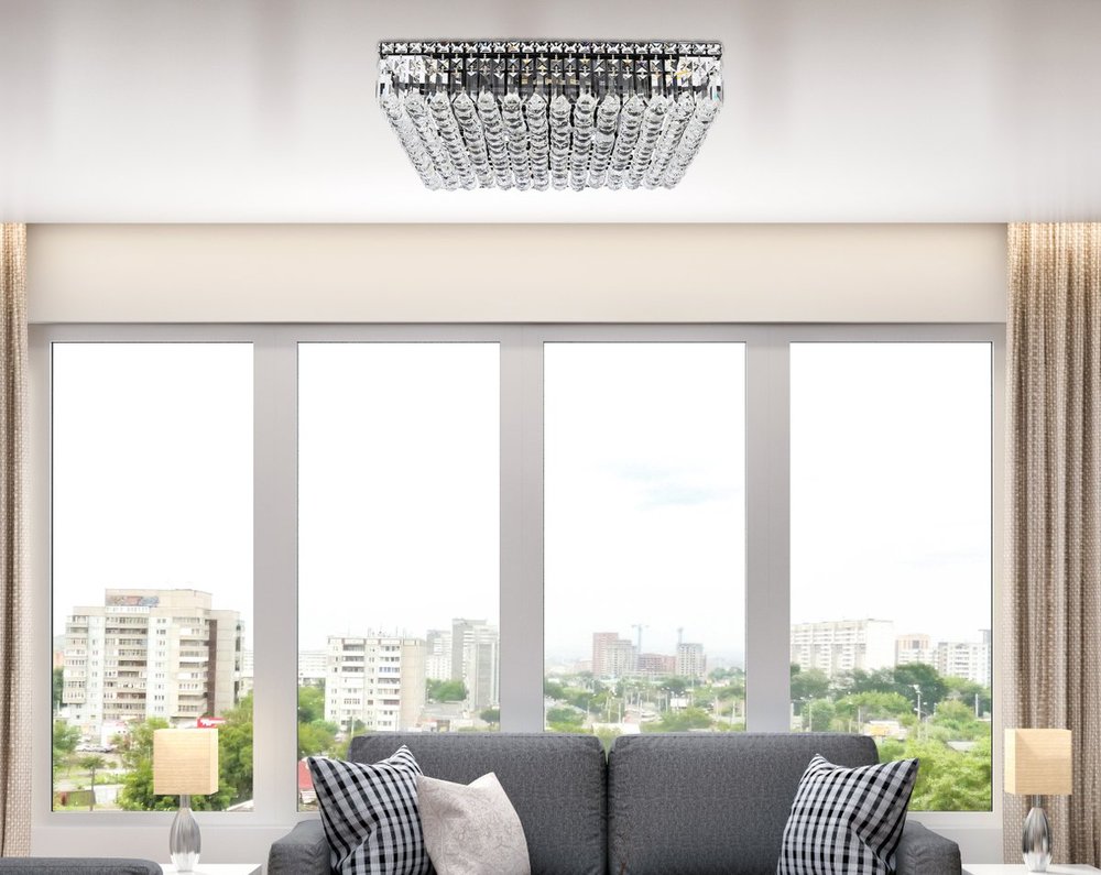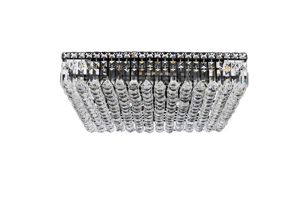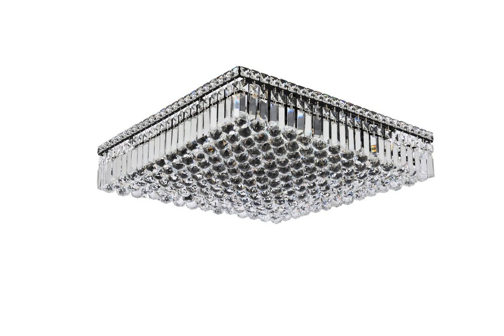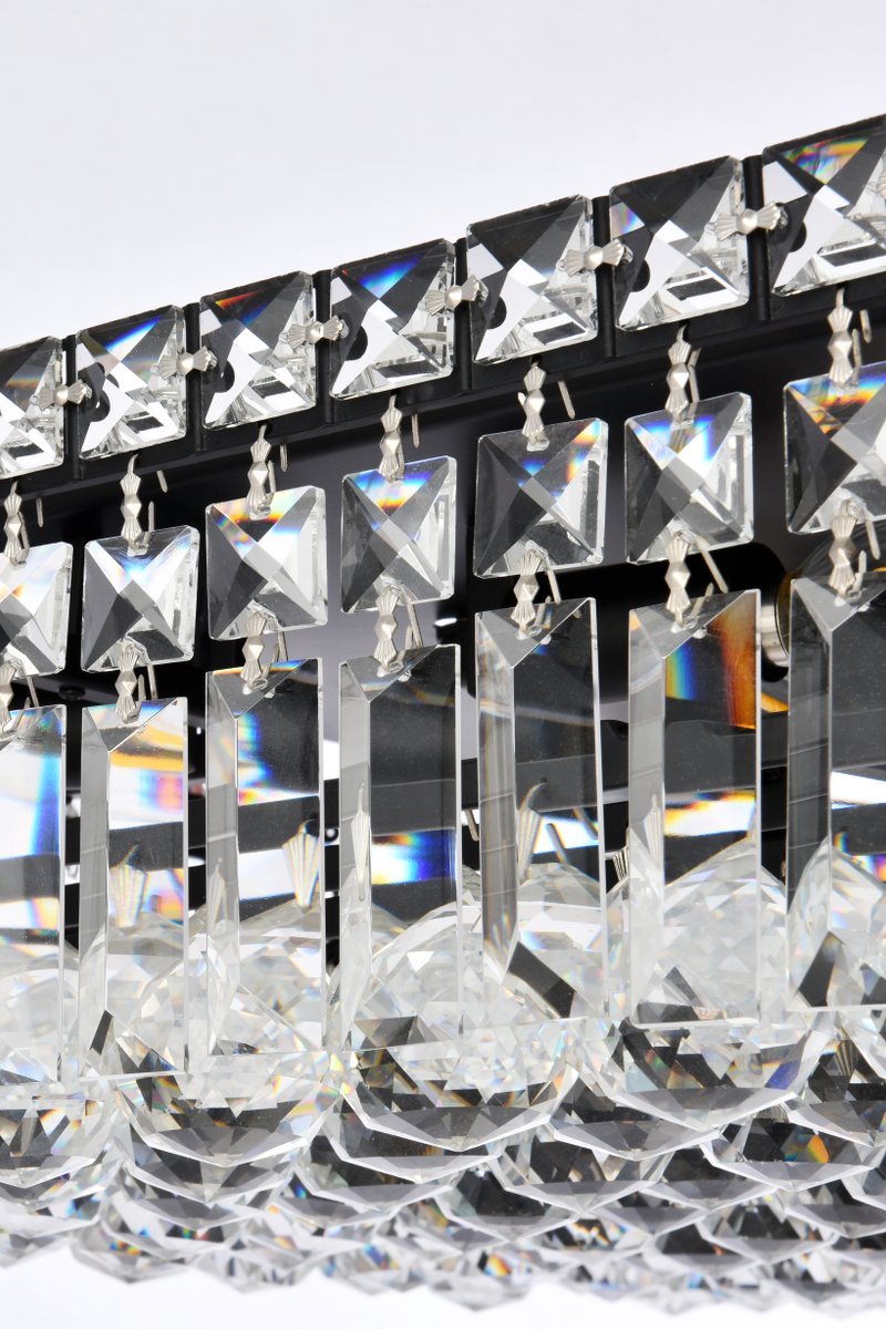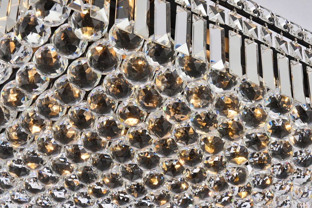 A riot of shapes and textures, Maxime collection flush mounts sparkle in a mosaic of crystal tiles. Square and rectangular precision-cut crystals form the flamboyant exterior while faceted crystal balls create a bubbled effect for light to shine through beneath. Available in a black or chrome finish with clear crystals, these lamps are a luxurious addition to a kitchen, stairwell, foyer, or living room.