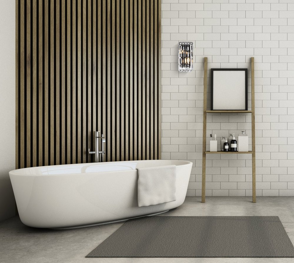A riot of shapes and textures, Maxime collection wall sconces sparkle in a mosaic of crystal tiles. Square and rectangular precision-cut crystals form the flamboyant semicylindrical or rectangular exterior while faceted crystal balls create a bubbled effect for light to shine through beneath. Available in a black or chrome finish with clear crystals, these lamps are a luxurious addition to a bathroom, entryway, or kitchen.