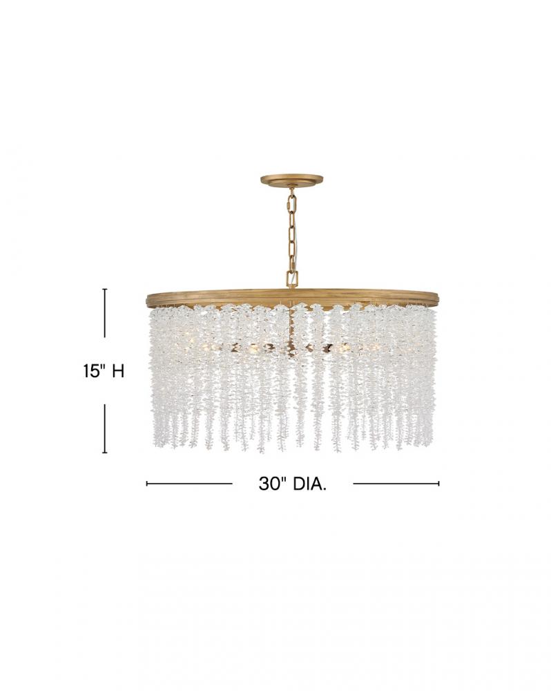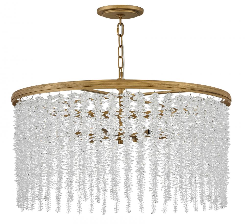 Dripping with glamour, Rubina’s magnificent shade is crafted from individually hung strands of sparkling crystal. A traditional tiered frame accentuates every beautiful refraction with its Burnished Gold finish.