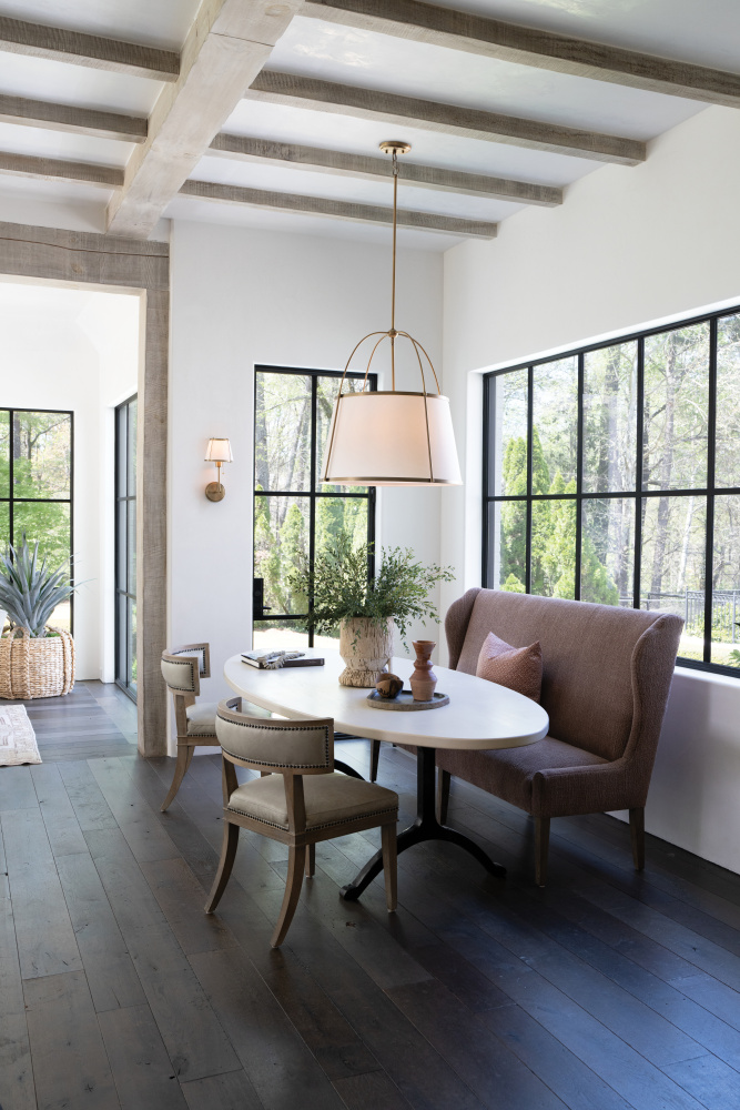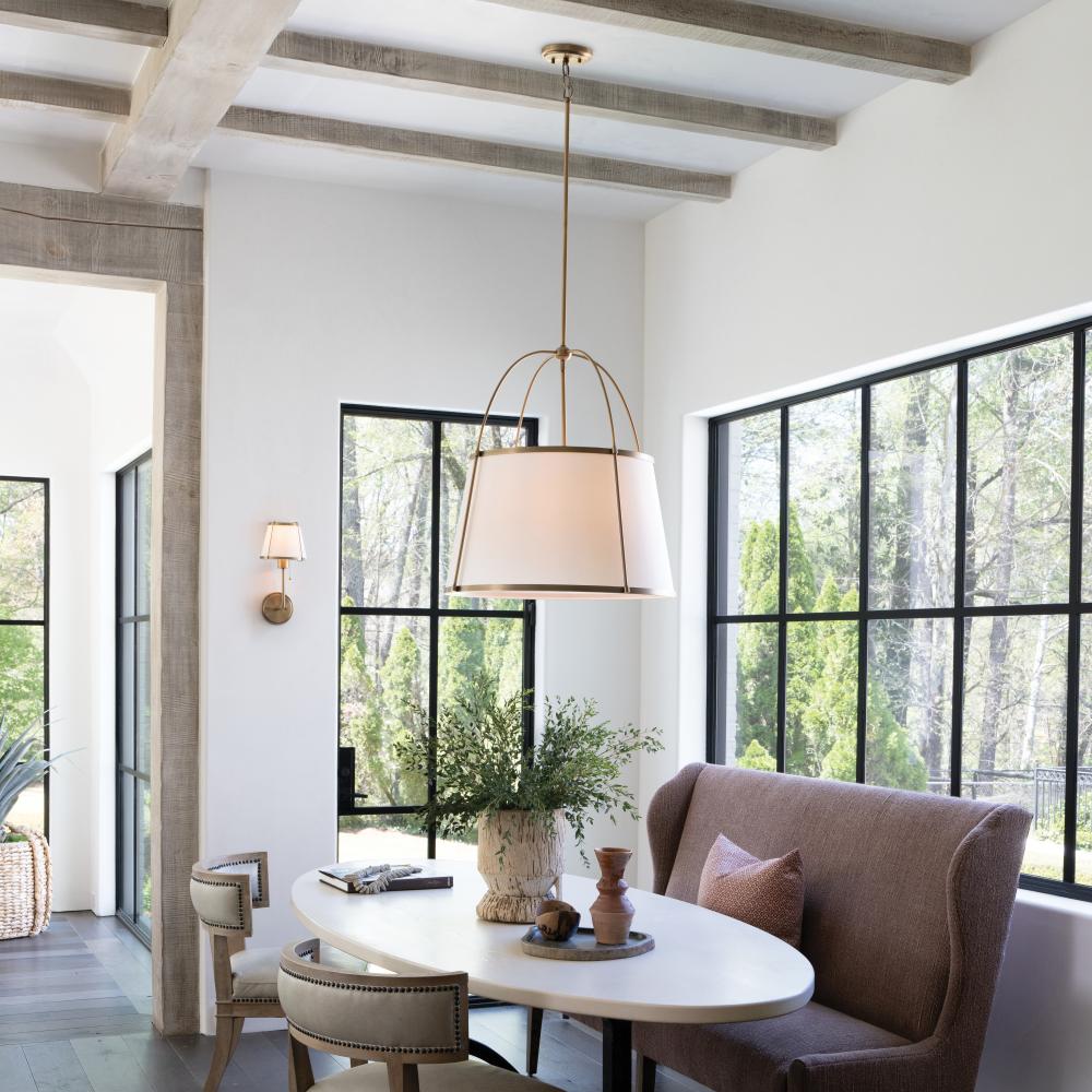 An effortless blend of classic style elements, Clarke’s transitional design is fresh and elegant. Its captivating metal or linen shade and contrasting frame lend architectural beauty to any space with a selection of sophisticated finishes to complement any décor aesthetic.