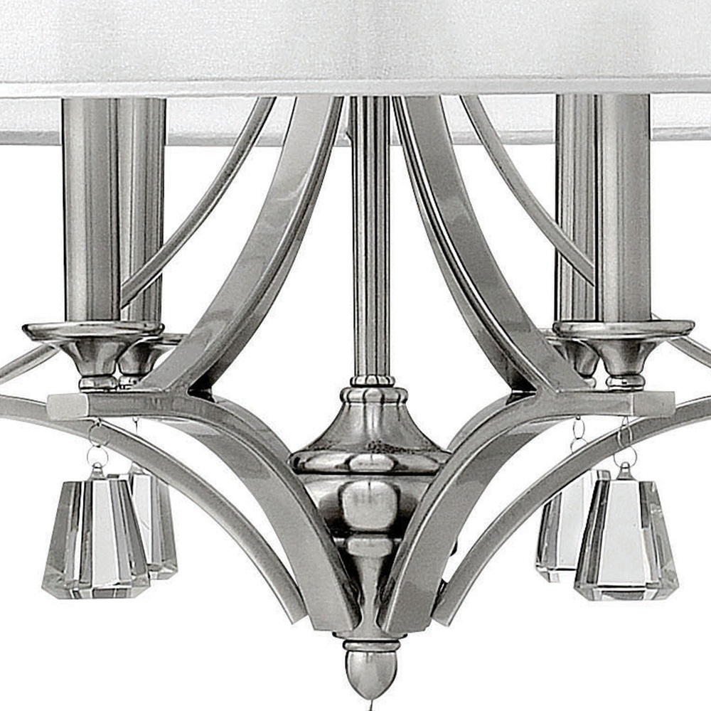 This elegant collection in our Brushed Nickel and French Bronze finish features a sheer translucent double hardback shade and tapered square crystal accents.