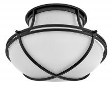 Saddler’s sculptural tear-drop dome forms a chic silhouette accentuated by decorative metal straps. Etched opal glass complemented by a Heritage Brass or Black finish creates a versatile design with high style.