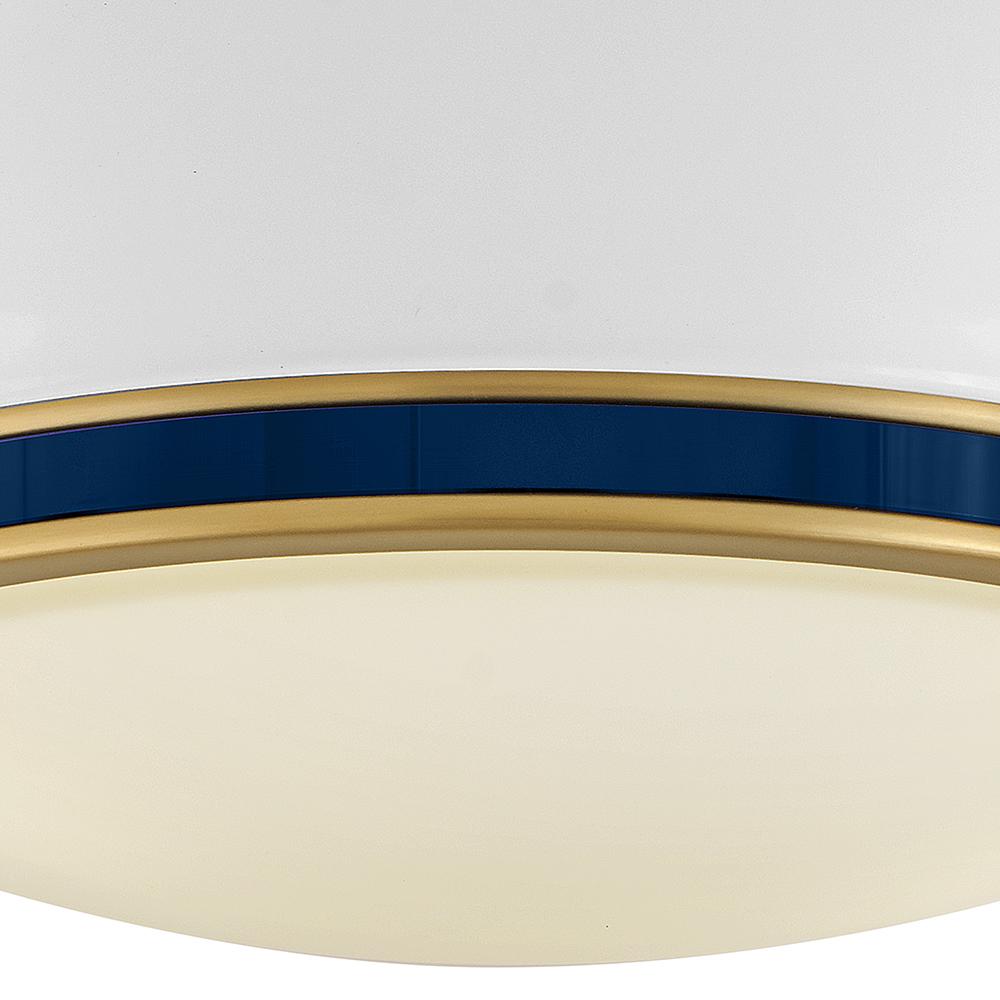 Timeless with a classic equestrian aesthetic, Barton’s metal dome shade with double-strap design is available in Matte Black, Matte White, or Gloss White with Navy finishes complemented by Lacquered Brass and an etched opal glass diffuser.