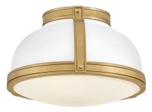 Timeless with a classic equestrian aesthetic, Barton’s metal dome shade with double-strap design is available in Matte Black, Matte White, or Gloss White with Navy finishes complemented by Lacquered Brass and an etched opal glass diffuser.