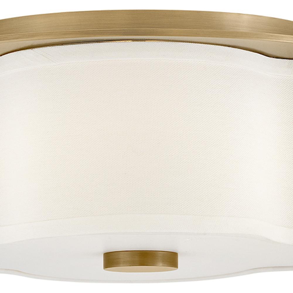 The curved quatrefoil silhouette of Delaney’s off-white linen shade elegantly complements traditional aesthetics. Etched glass softly diffuses light, while an oversized decorative canopy in Heritage Brass or Black provides a subtle contrast.