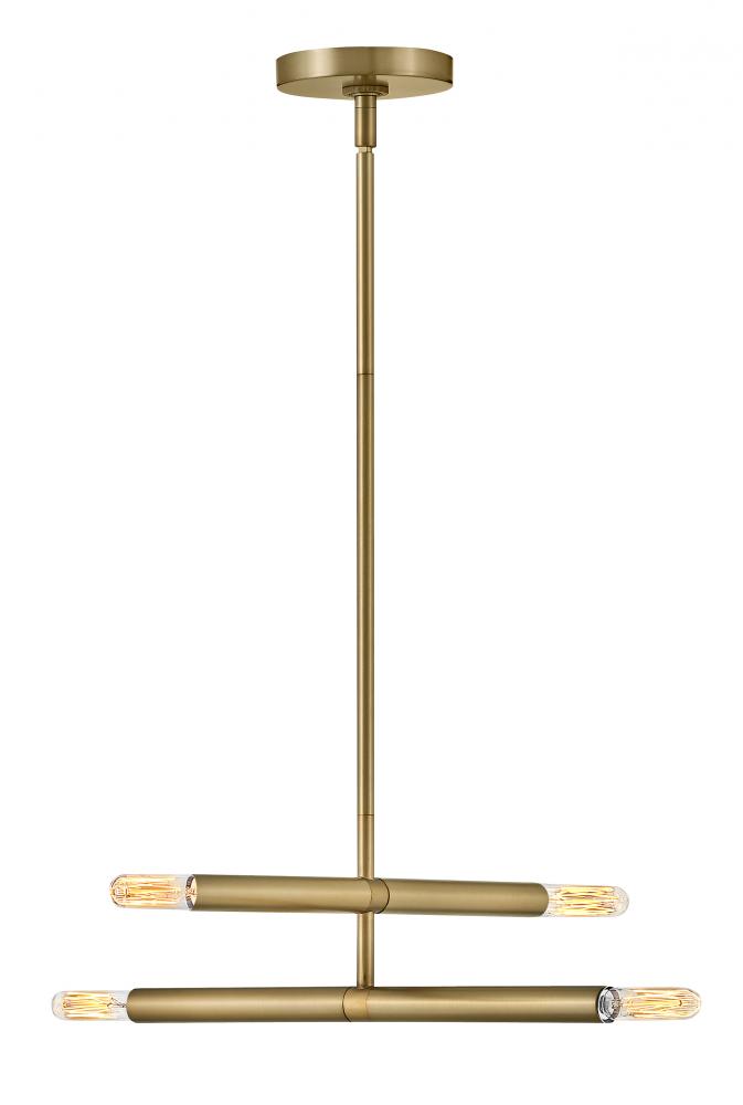 Millie tells a linear love story with elongated cylindrical rods extending outwards, creating a sleek statement that commands attention. This design establishes immediate style credibility thanks to its iconic midcentury modern origin, ensuring visual intrigue in either Black or Lacquered Brass finishes. To complement Millie's chic style, we recommend G16.5 bulbs.