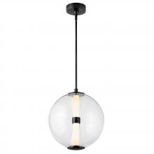 The centerpiece of Elin's bold and contemporary design is its sculpted clear glass that highlights an integrated LED inner light source. Featuring both conventional and striking elements, Elin is ideal for modern and transitional interiors and available in Black or Lacquered Brass finish options.