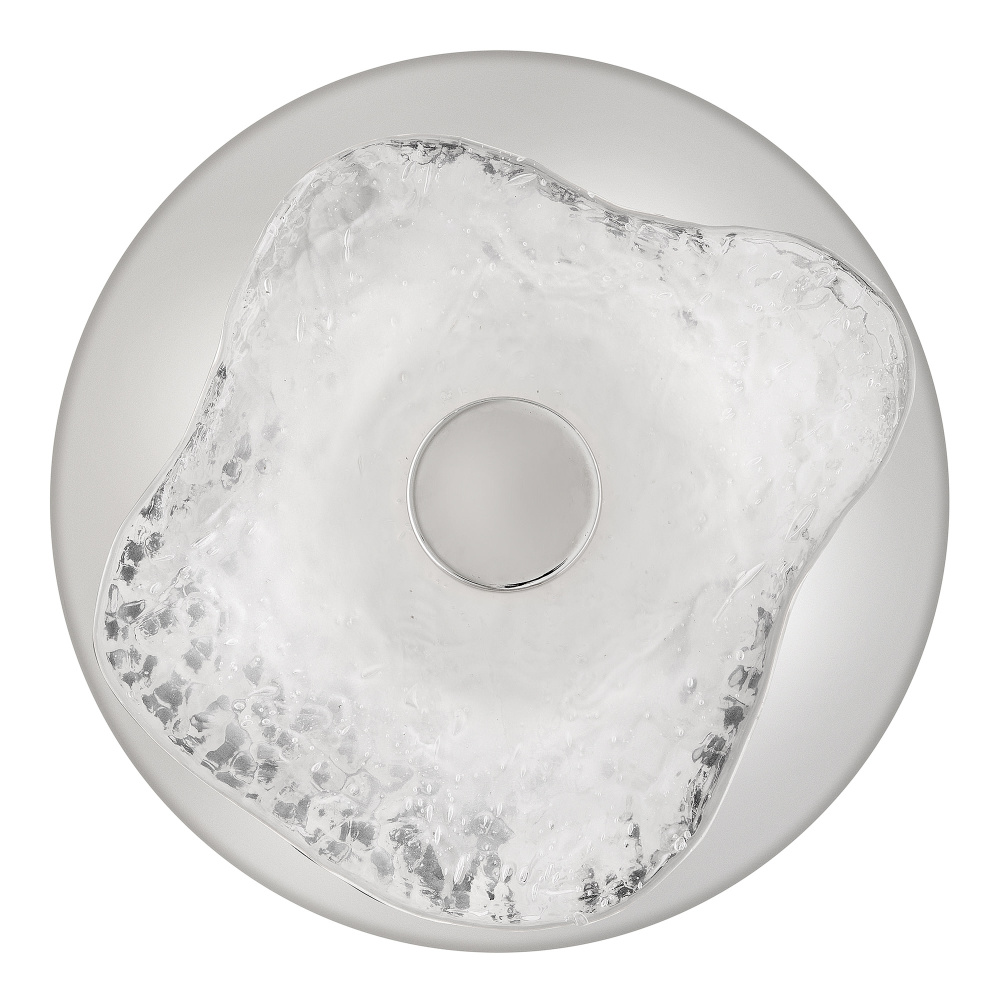 Balancing chic style and versatility, Iona’s modern, asymmetrical design is defined by artisan-sculpted art glass hand-painted with a smooth ombre transitioning from frosted white to clear. Soft, dimmable LEDs emphasize subtle textures and distinctive details in the glass’s surface, further highlighted by an exaggerated backplate. Mount as a sconce or as a sleek flush mount.
