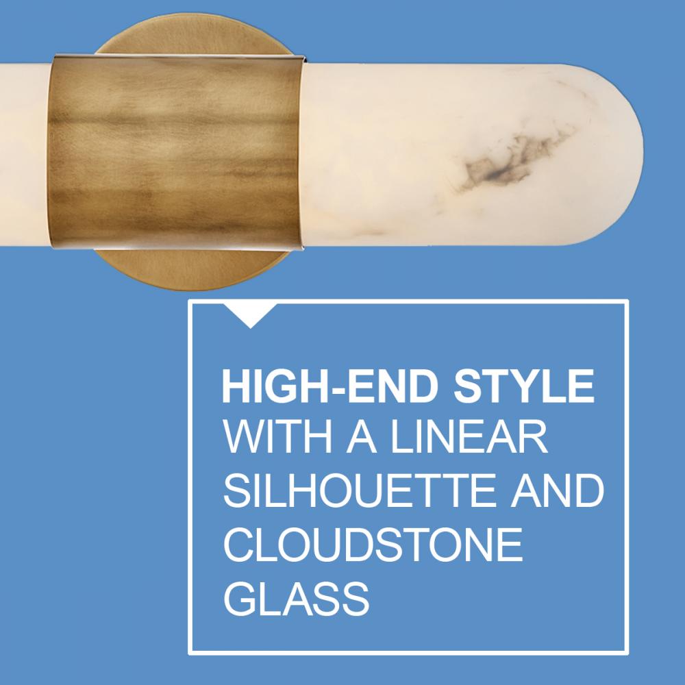 Ibiza provides unparalleled, high-end style with its linear silhouette. The oblong design is finished with rounded edges to provide a touch of the unexpected. Faux alabaster glass centered with a thick metal band brings modern glam while staying rooted in traditional elegance.