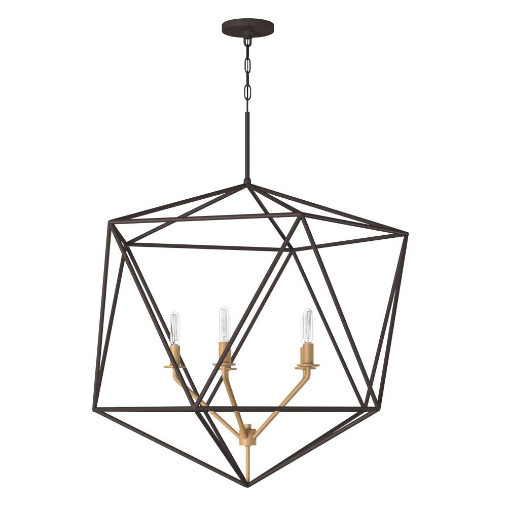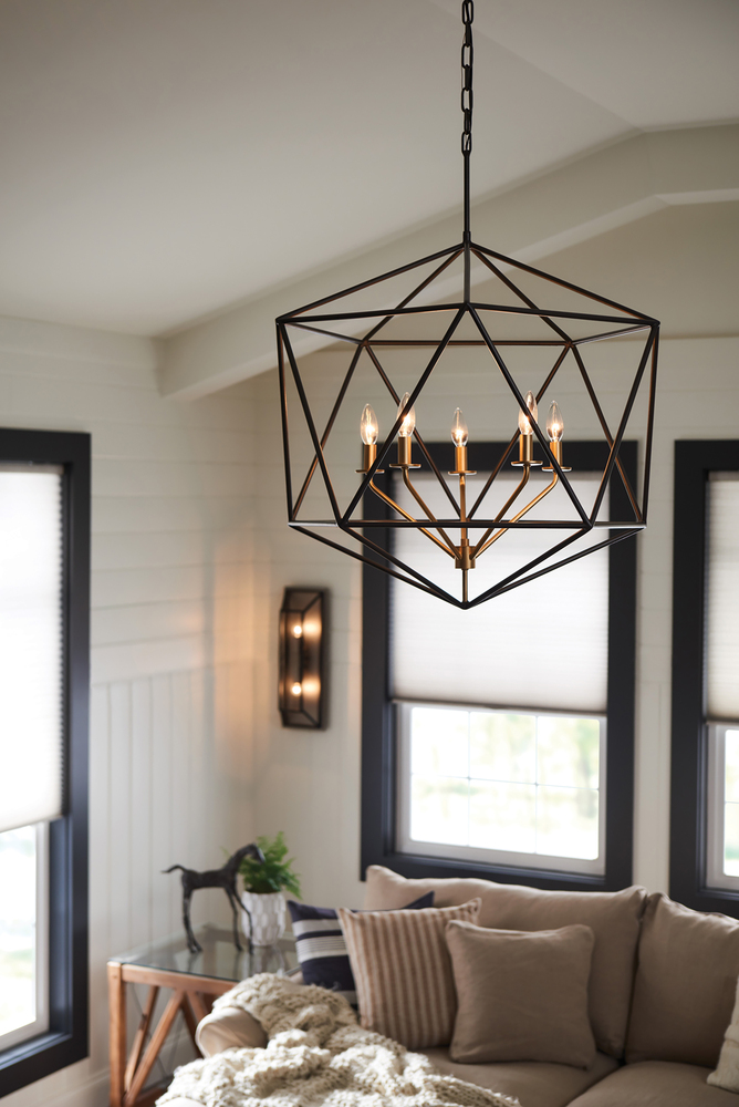 Sleek and chic, Astrid is designed as an airy geometric beauty balanced with robust welded construction. The inner light cluster, uniquely wired from the bottom, appears to float inside the outer cage. The two-tone finish further enhances the layering effect for added depth and dimension.