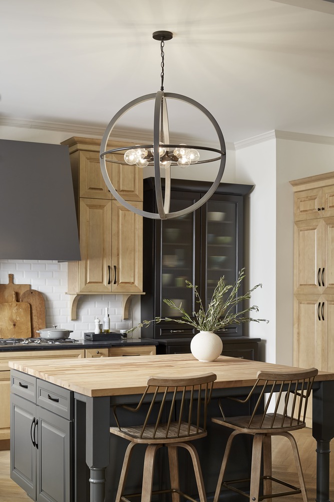 Bodie is simple, sturdy and built to last, just as expected when industrial and farmhouse influences combine. The open globe look revolves around clean vertical lines with a Dark Cement finish encircling a single Bronze finish horizontal band. A Bronze stem and canopy complete the two-tone design.