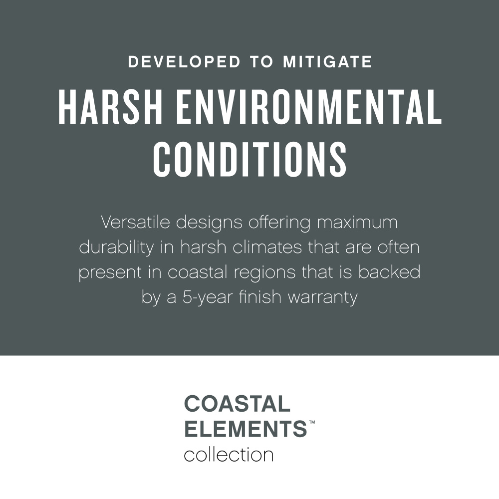Republic's striking double frame design, constructed from a composite material and treated with an anti-fading agent for maximum durability, is at home on the coast or a country lodge. The Oil Rubbed Bronze, Satin Nickel and Black resilience finishes feature a 5-year warranty and are resistant to rust and corrosion. Vintage filament bulbs are recommended to complete a stylish look.