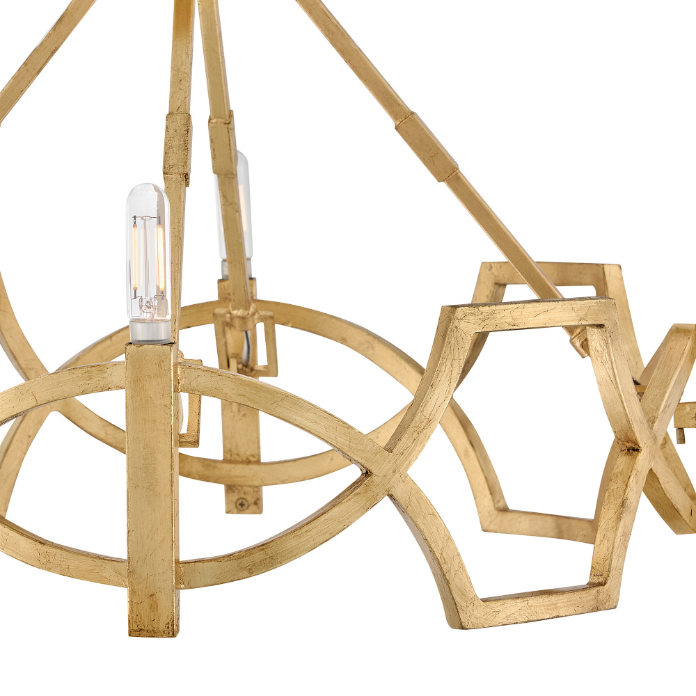 Leona’s decorative scrollwork is crafted from a gently curved, smoothly welded frame finished in hand-leafed Distressed Brass. Clean shapes complemented by exposed candelabra lamps create a family of formal fixtures with undeniable charm.