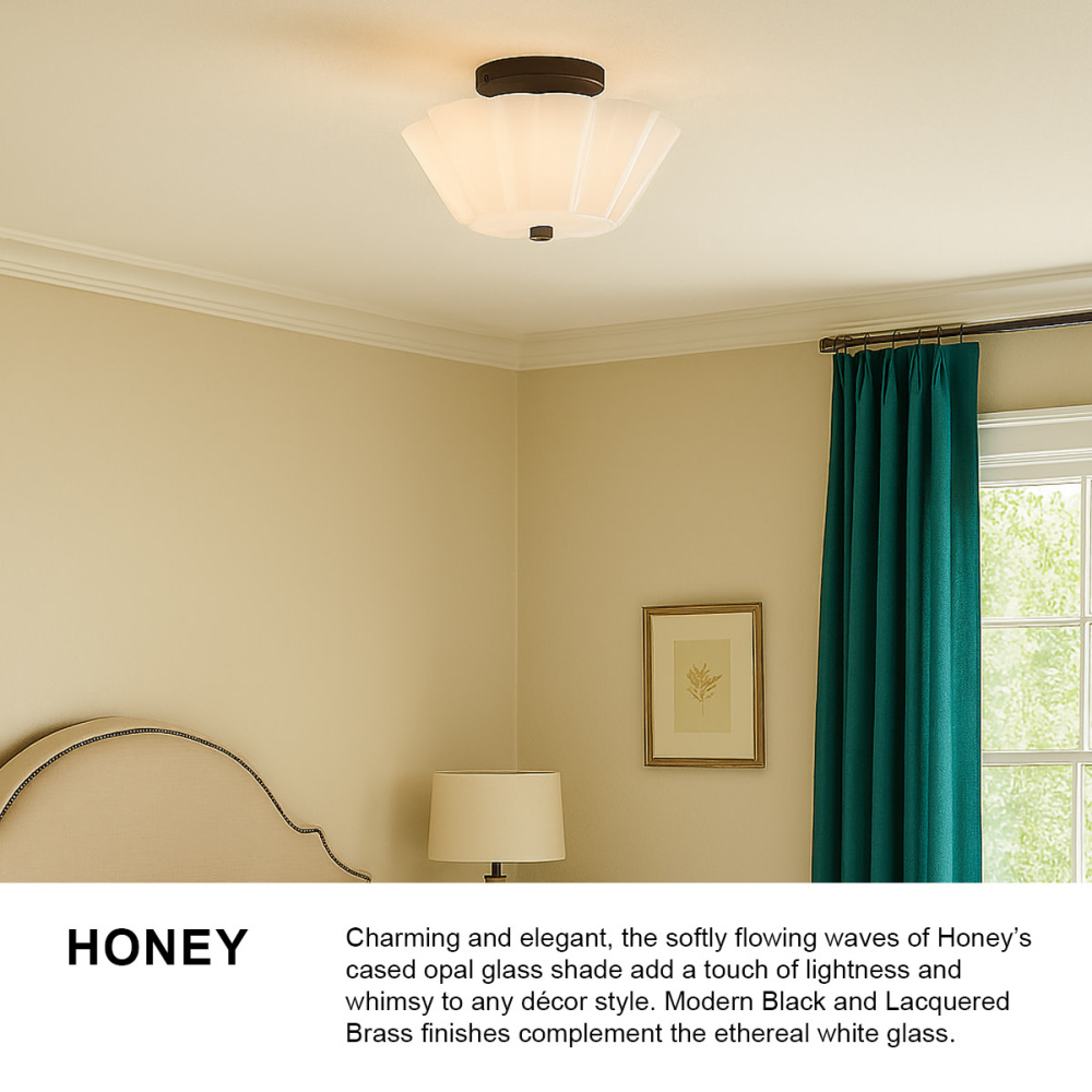 The softly flowing waves of Honey’s cased opal glass add a touch of lightness and whimsy to any decor style.