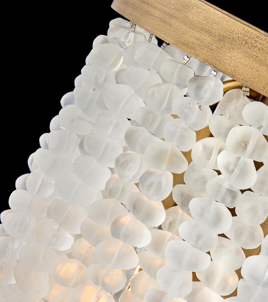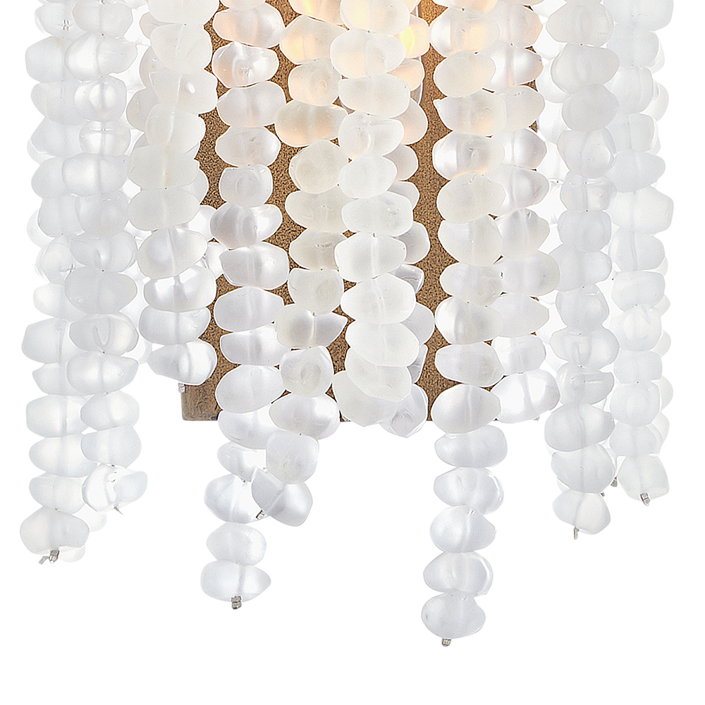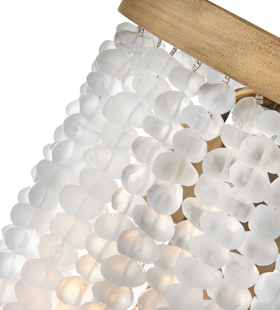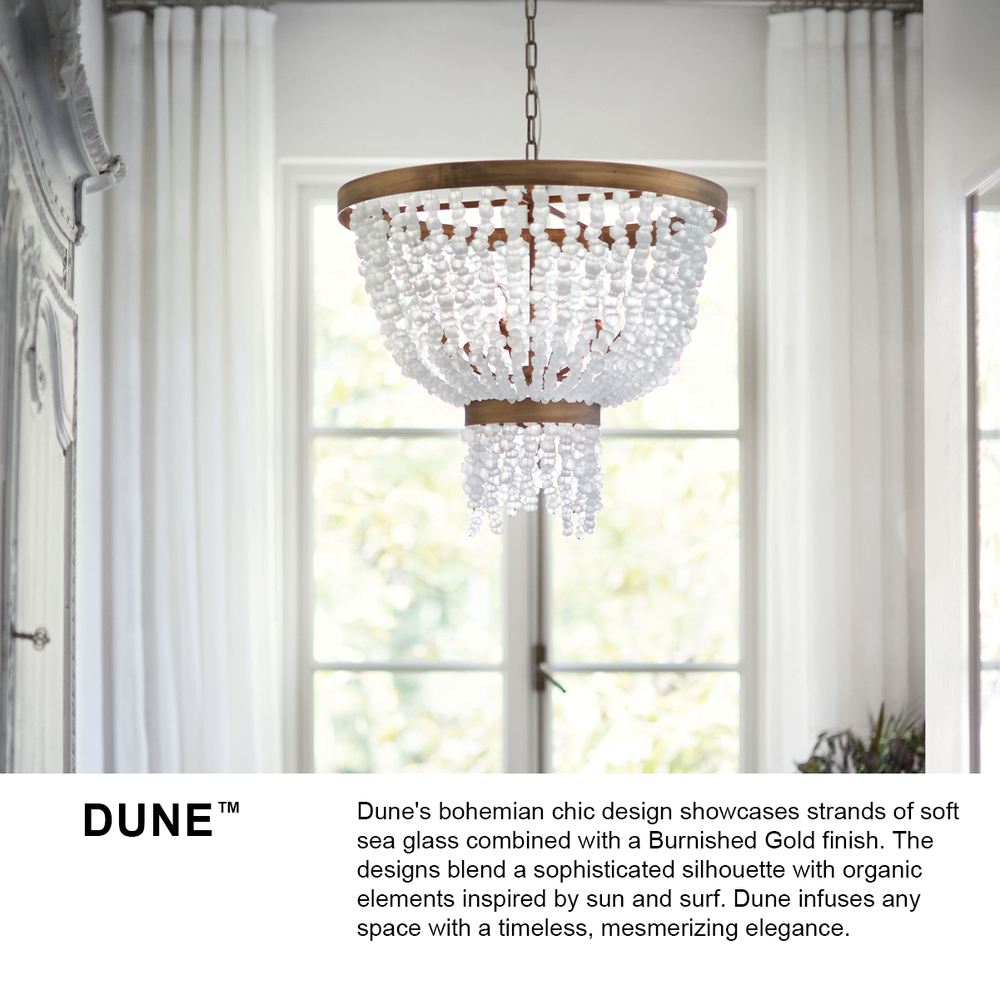 Dune's bohemian chic design showcases strands of soft sea glass combined with a Burnished Gold finish. The designs blend a sophisticated silhouette with organic elements inspired by sun and surf. Dune infuses any space with timeless, mesmerizing elegance.