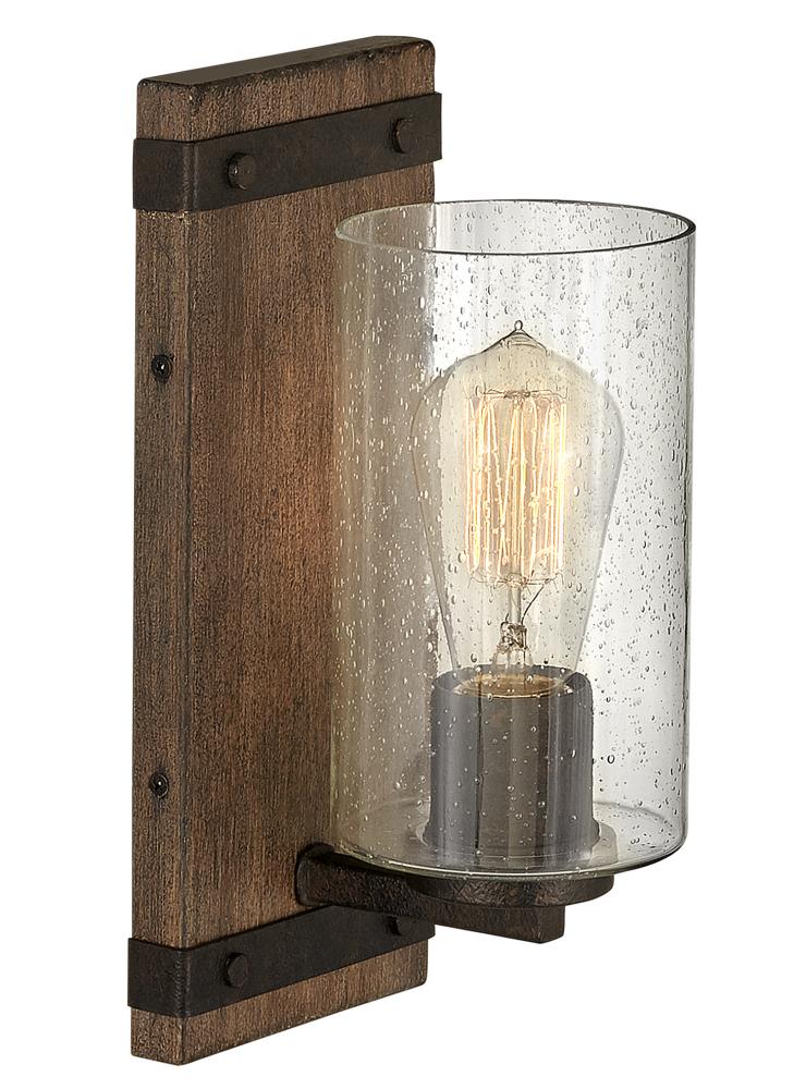 The fresh, rustic design of the Sawyer collection will enhance any living experience with a warm, cozy ambiance. The Aged Zinc finish with Distressed Black accents or Sequoia finish with Iron Rust accents paired with clear seedy glass offer a farmhouse chic style.