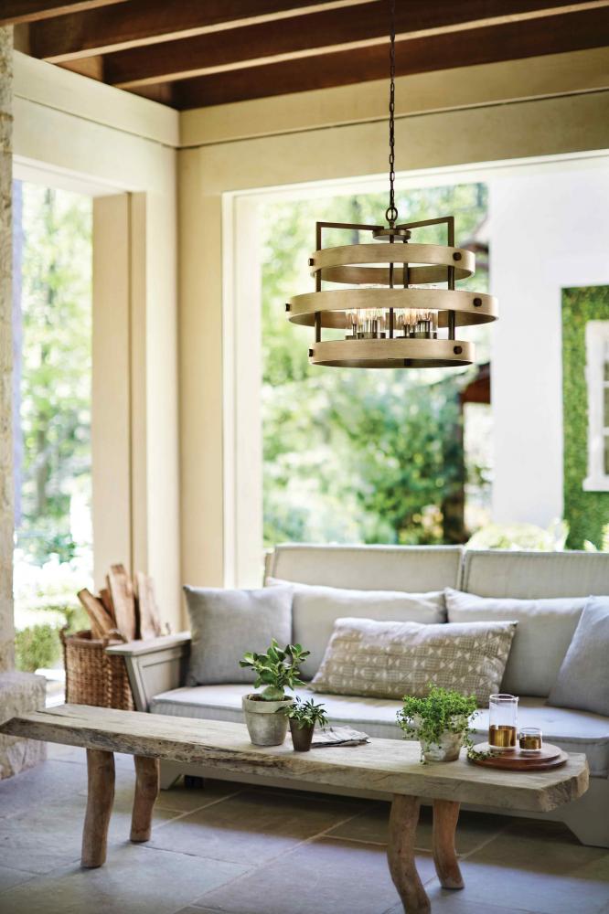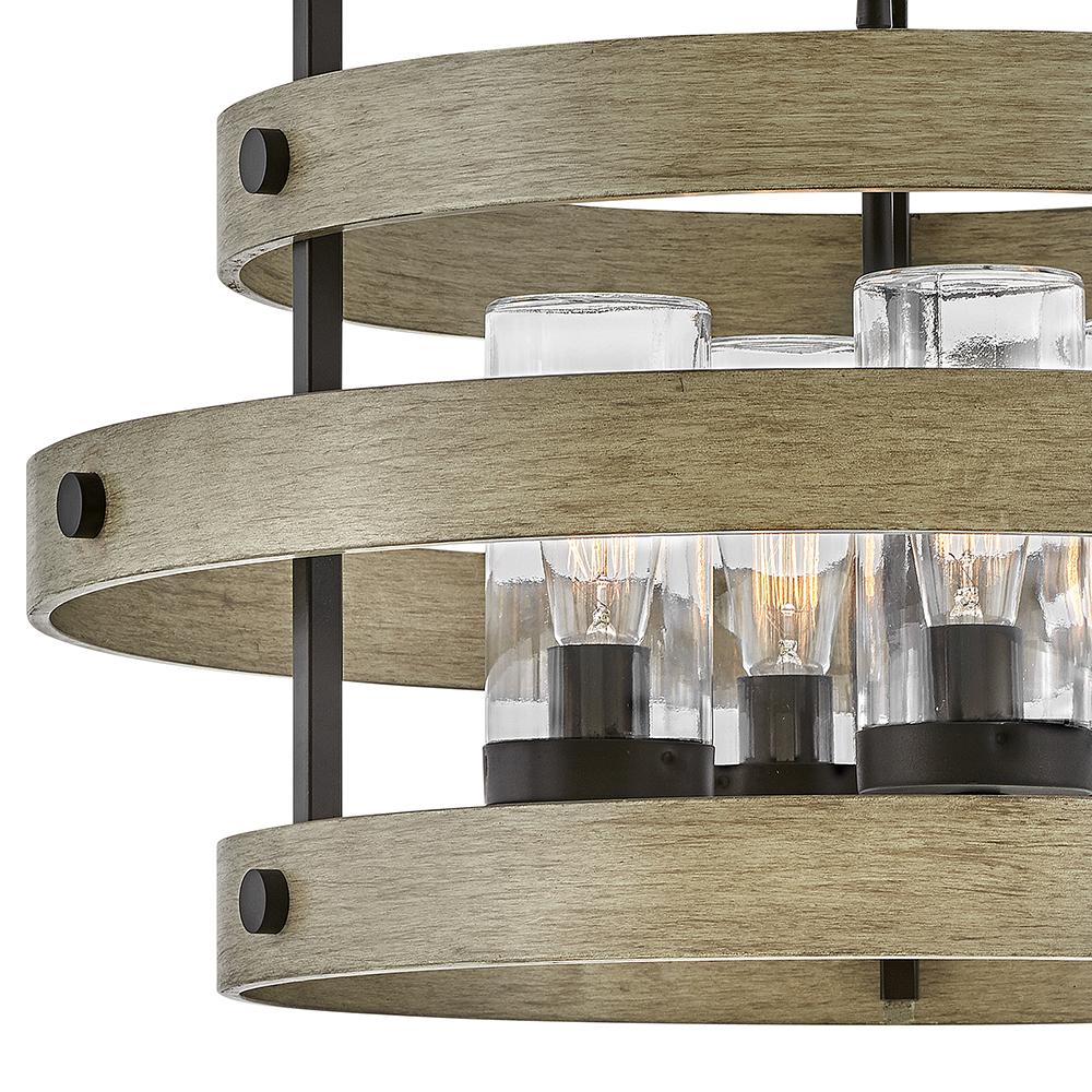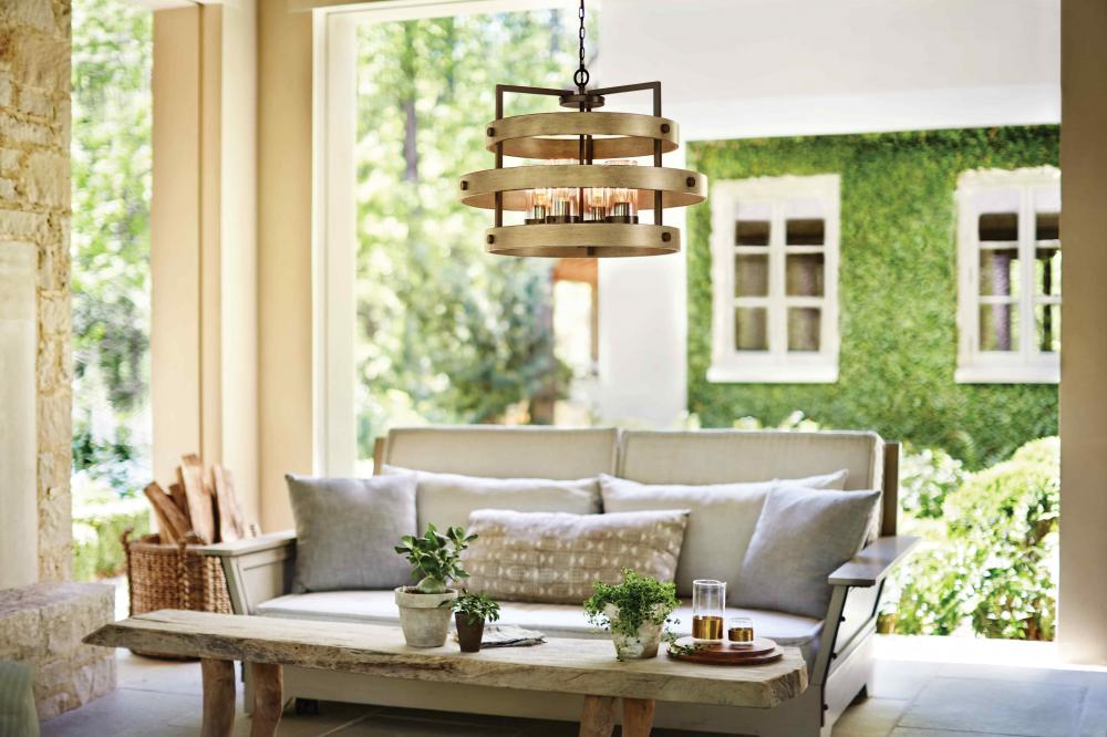 Transitional in style, Riverwood blends in with a variety of décors. The rich Bronze with wood-tone inspired, Warm Ash accents completes the rustic look, complemented by its sophisticated frame for a casual and effortless design. Riverwood is from the Open Air collection and features a linear and round chandelier option.